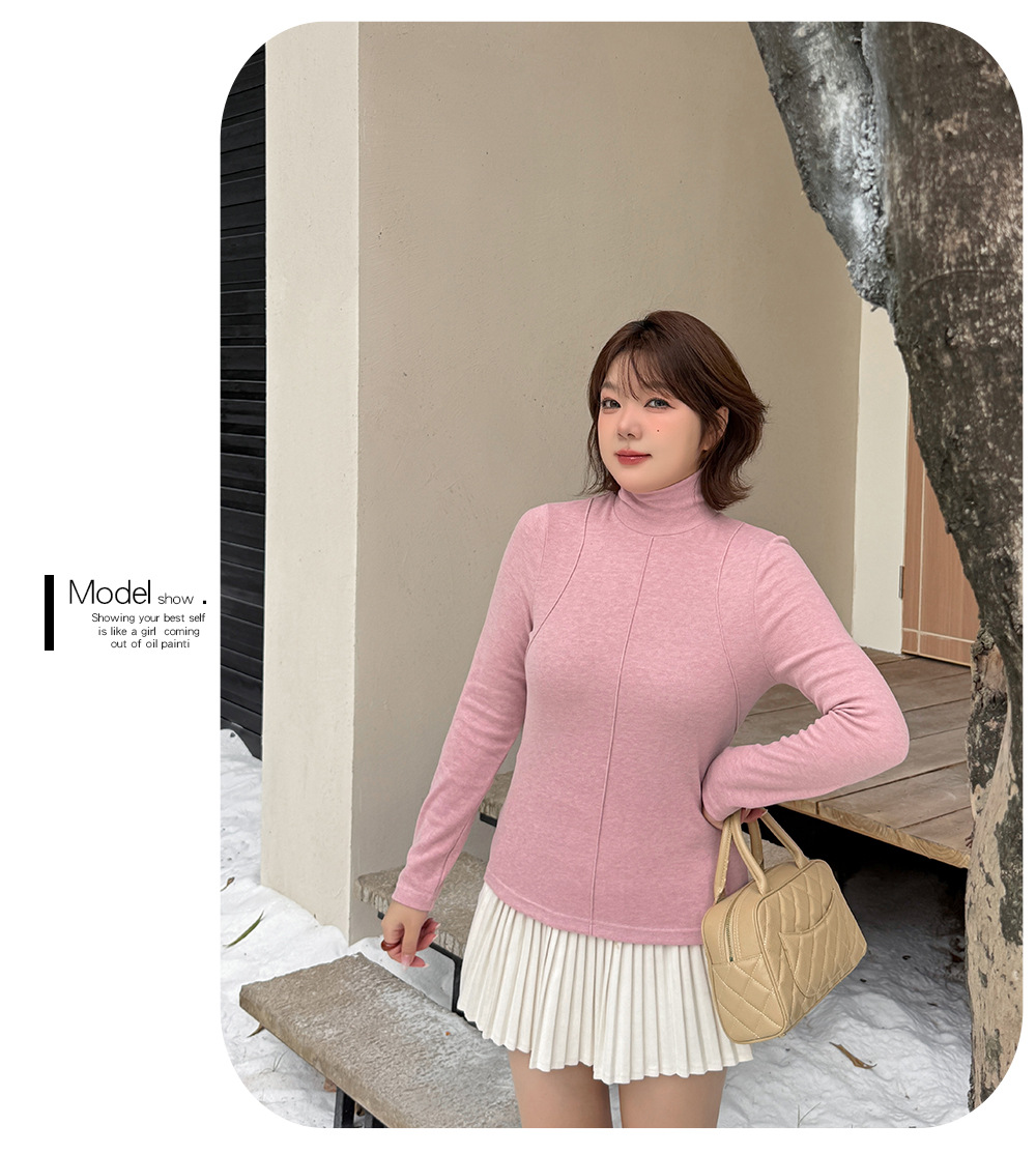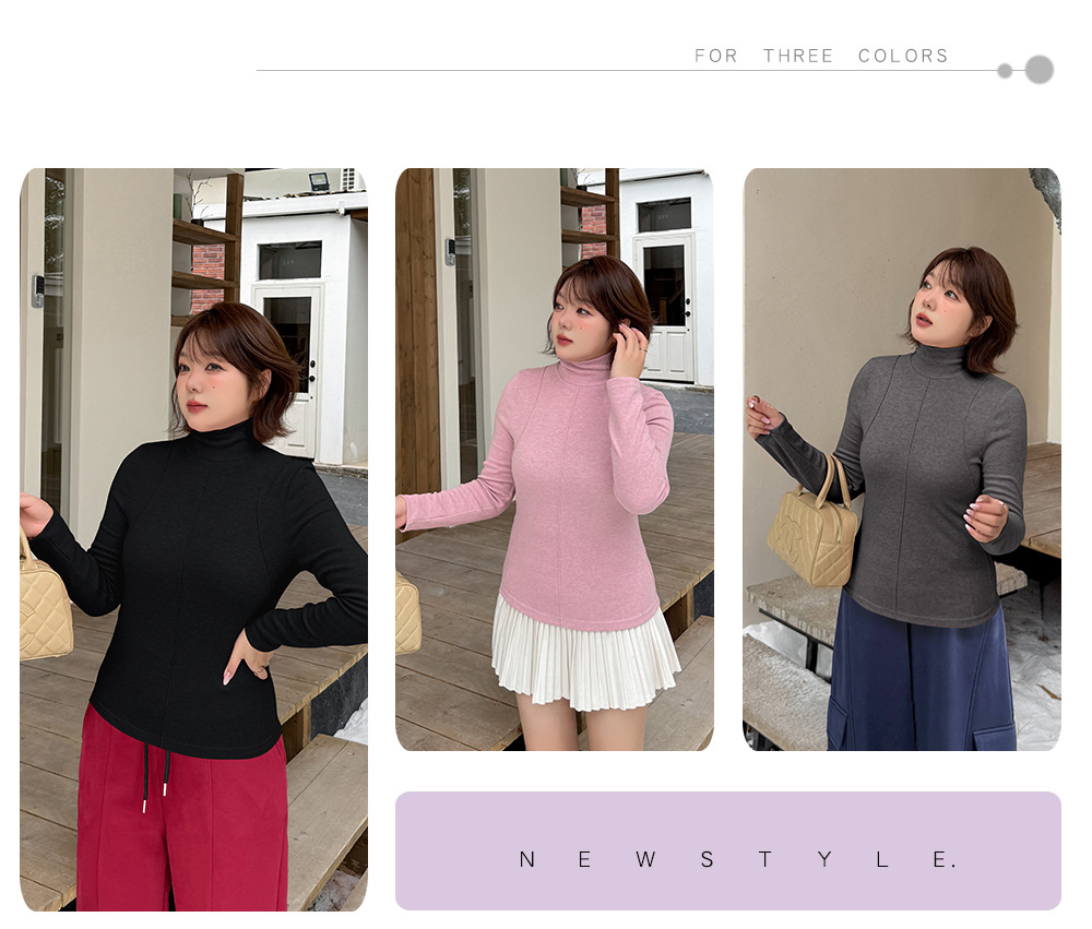大きいサイズ レディース フロントラインタートルネック起毛ニットインナー LL 3L 4L 5L