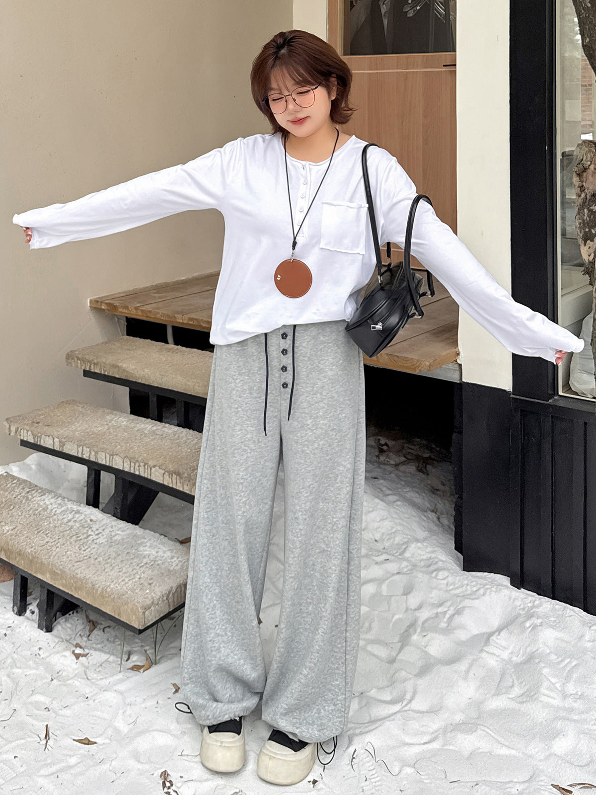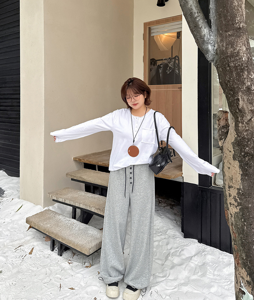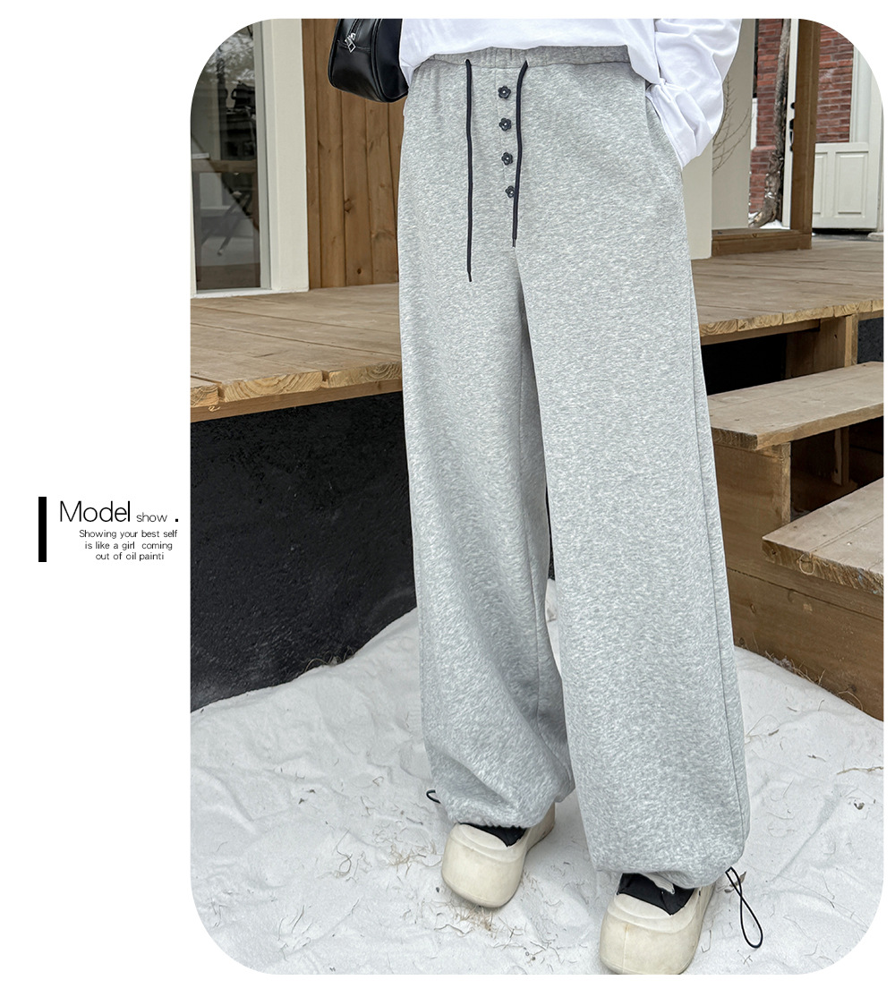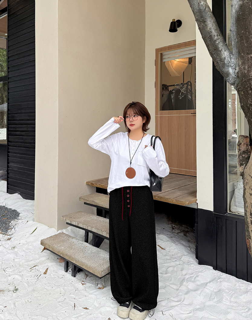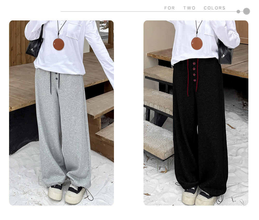 フラワーボタン付きフリース裏地スウェットパンツは、超ソフトな複合ニット生地で、内側には上質な暖かいフリース素材が使用されています。厚みがあり柔らかく、やや弾力があり、暖かい着心地です。ウエストゴムで伸縮性があり、フロント中央に小さな花のボタンで飾られています。ウエストと足首のドローストリングが同じ色の組み合わせで、脚口は調整可能です。カジュアルで、フラワーボタンのお洒落なスウェットパンツを是非お試しください。