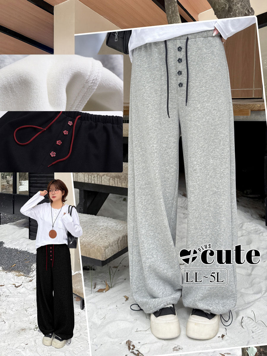 大きいサイズ レディース フラワーボタン付きフリース裏地スウェットパンツ LL 3L 4L 5L