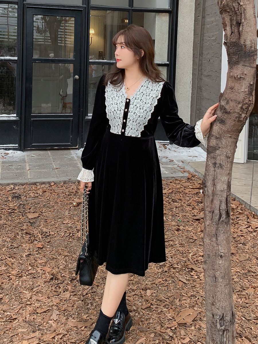 大きいサイズ レディース Vネックレースベルベットエレガントワンピース LL 3L 4L 5L 6L