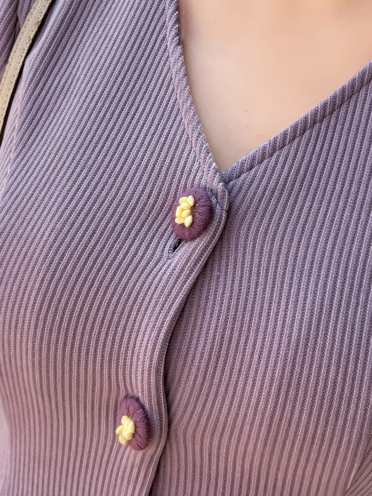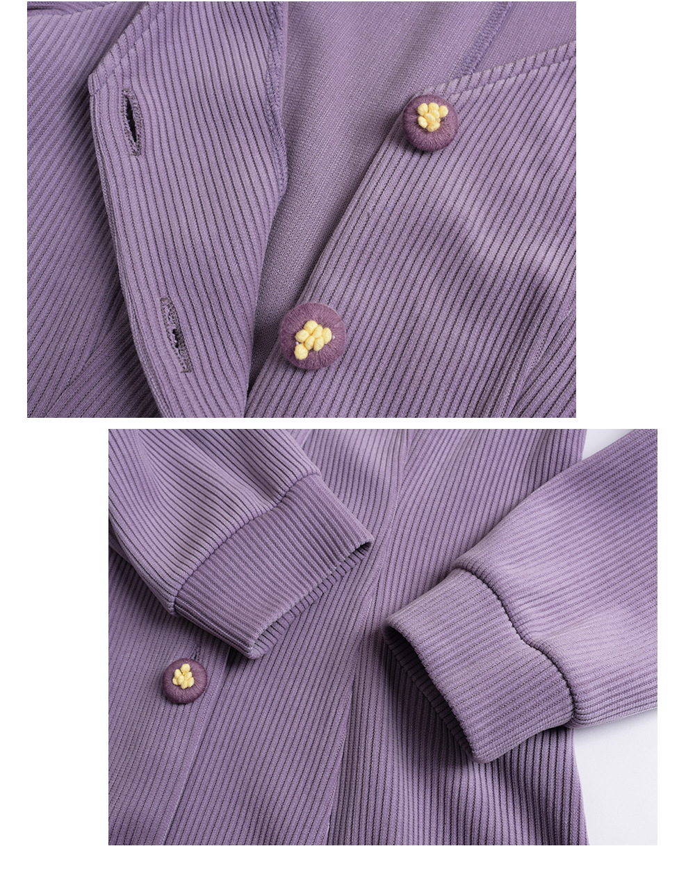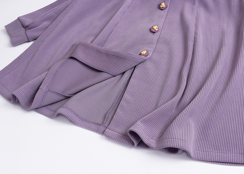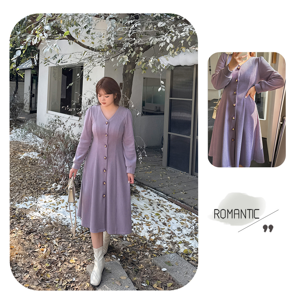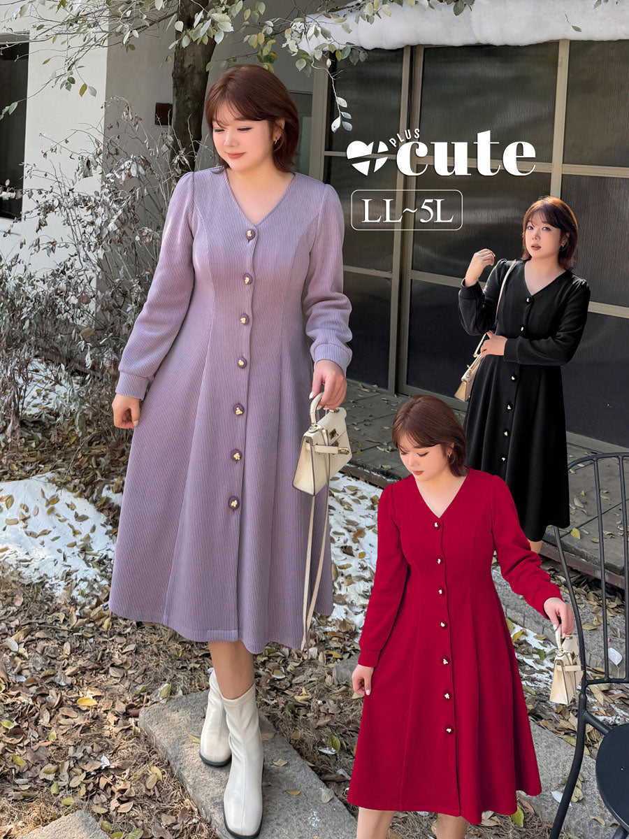 VネックでウエストにフィットしたAラインワンピースは、柔らかくしなやかなリブ編み生地を使用しています。厚手で暖かく、しっかりとした弾力性のある着心地です。小さめのVネックと、花の雄しべのようなフロントボタンのデザインがユニークです。フィットしたウエストとシンプルでエレガントなデザインが、スラリとした優雅なシルエットを保ちます。