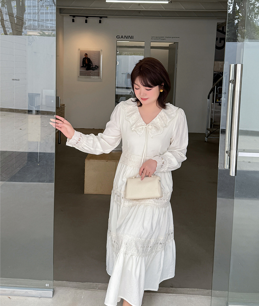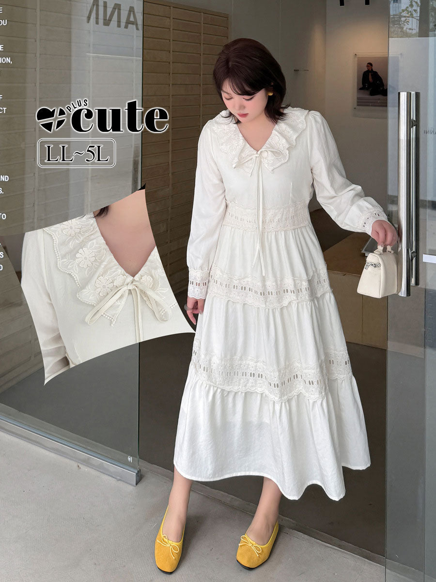 大きいサイズ レディース ジャカードレースロマンチックレトロワンピース LL 3L 4L 5L