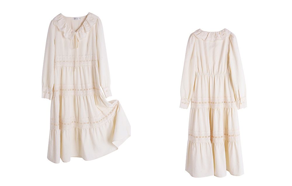 フランスの田園風景を思わせる、ロマンチックなレトロスタイルのワンピースです。柔らかくなめらかな織り生地は、ほどよいハリ感と美しいドレープが特徴で、着るだけで上品な雰囲気を纏えます。