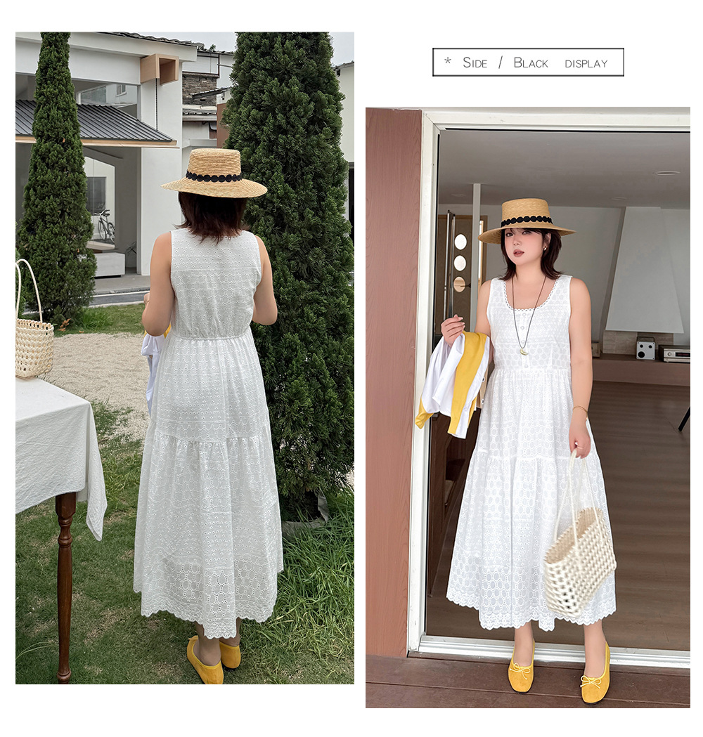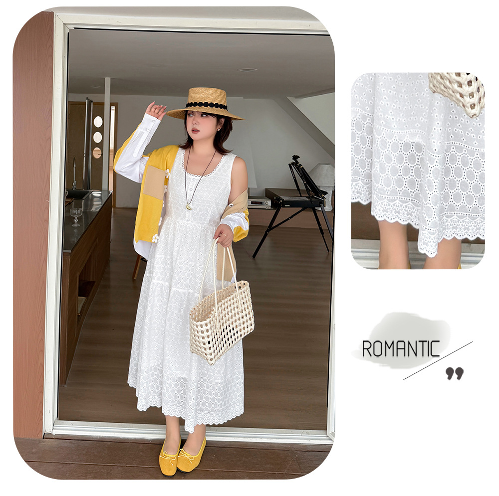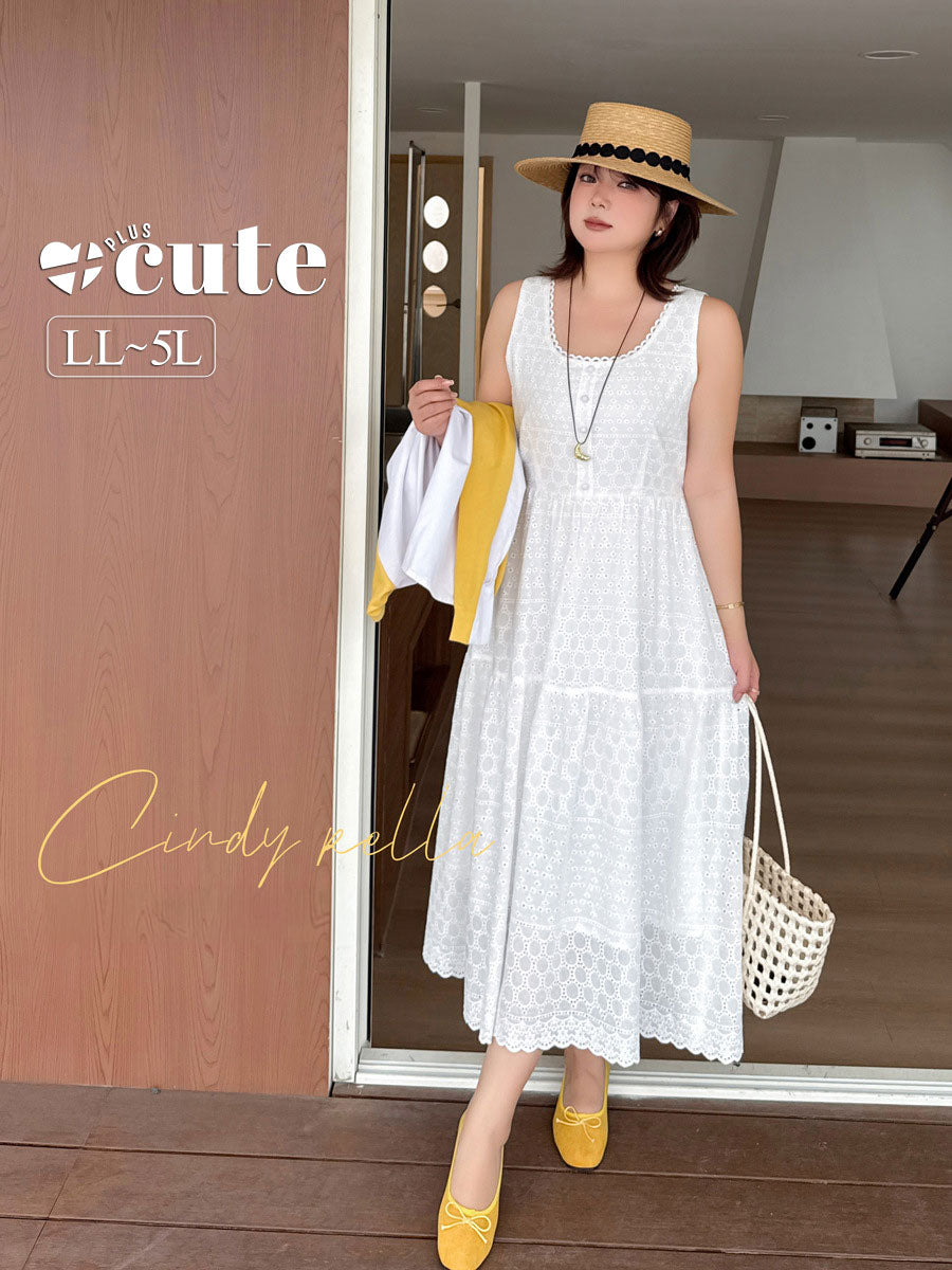 大きいサイズ レディース ホワイトノースリーブレースティアードワンピース LL 3L 4L 5L