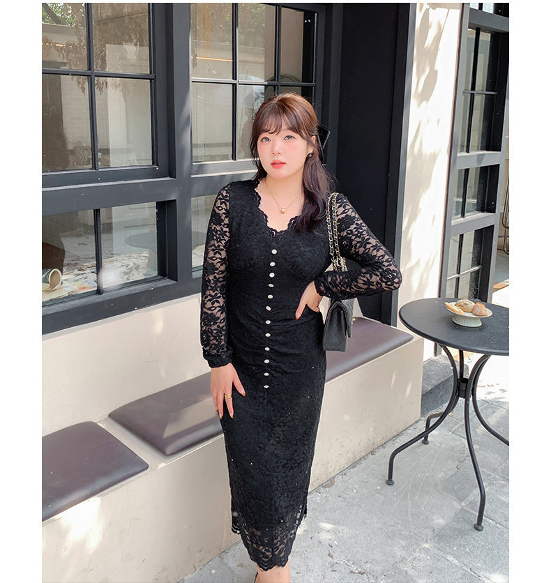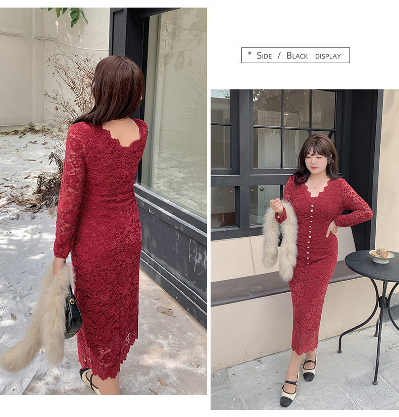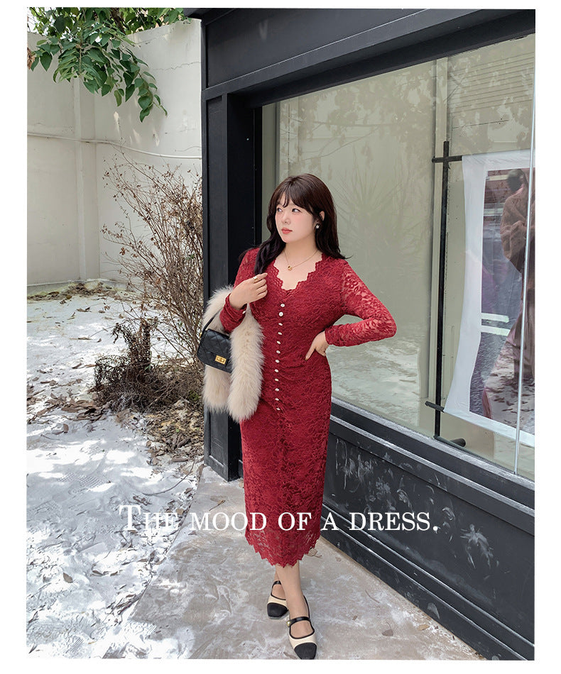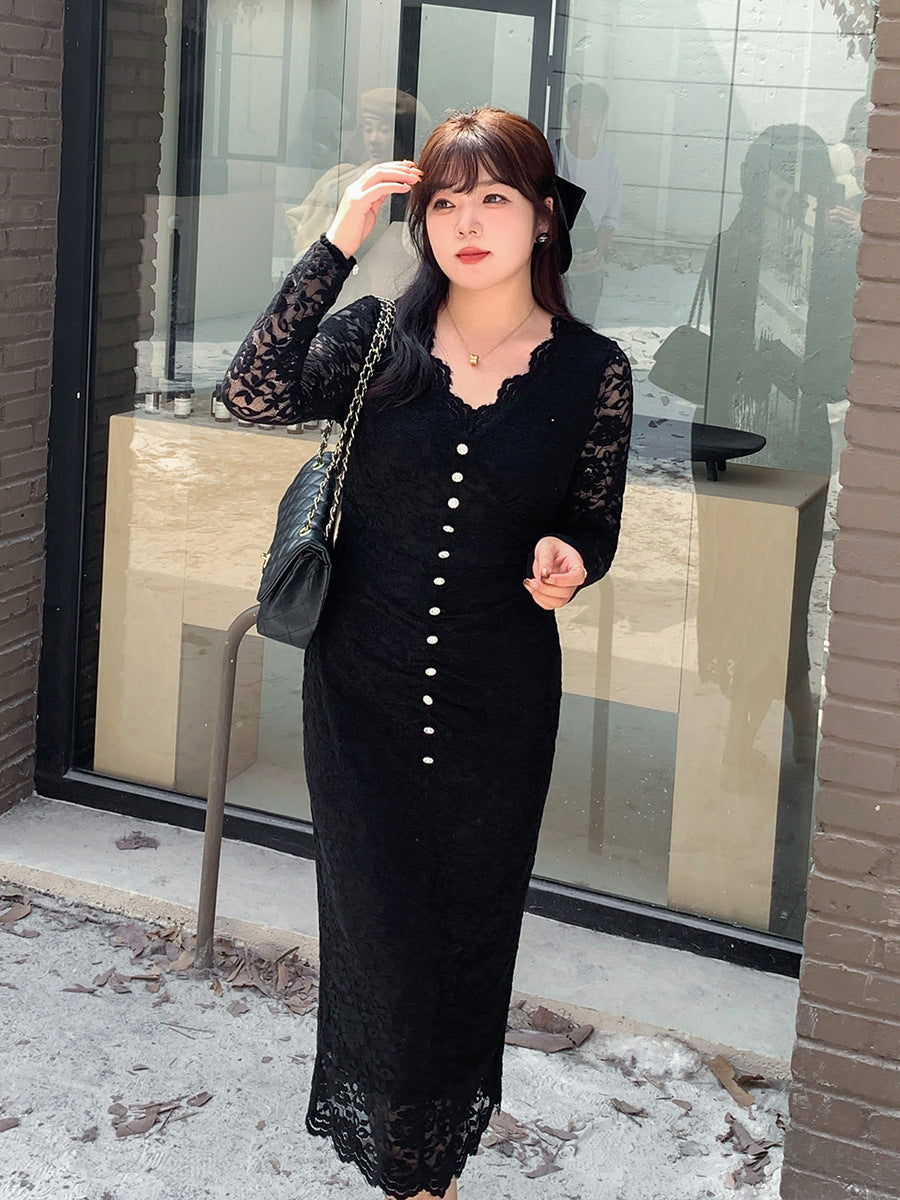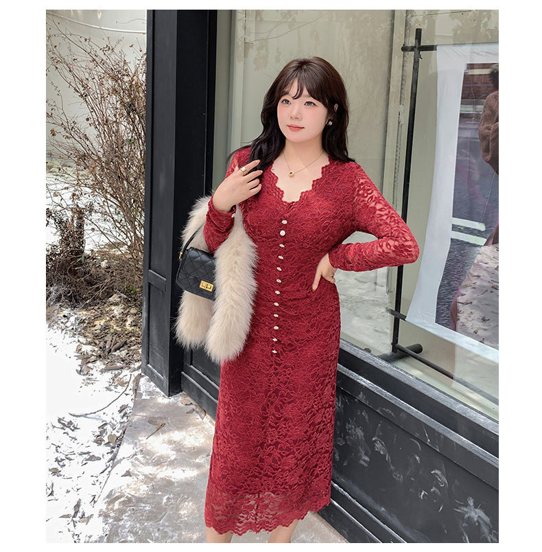 大きいサイズ レディース レースのVネックワンピース LL 3L 4L 5L