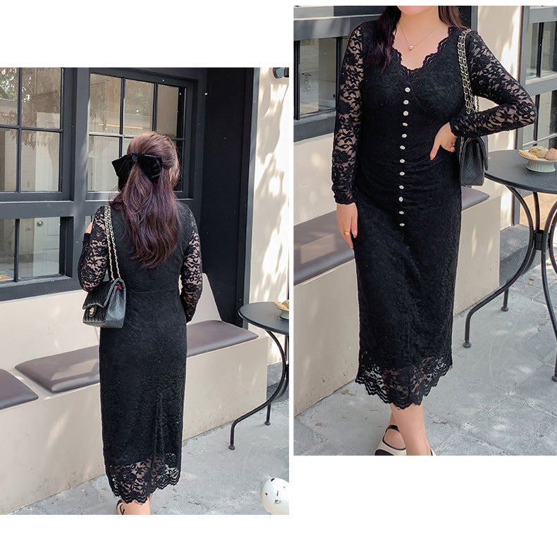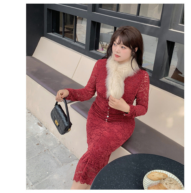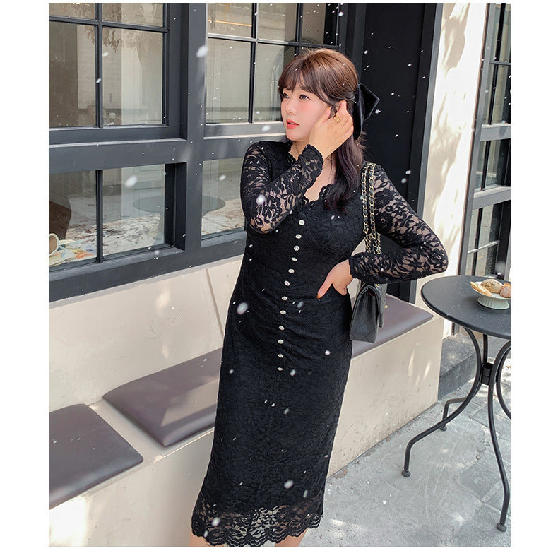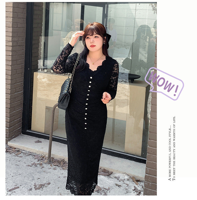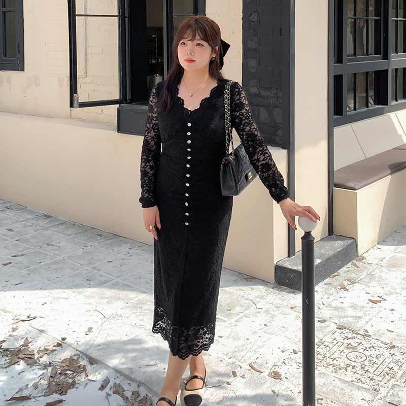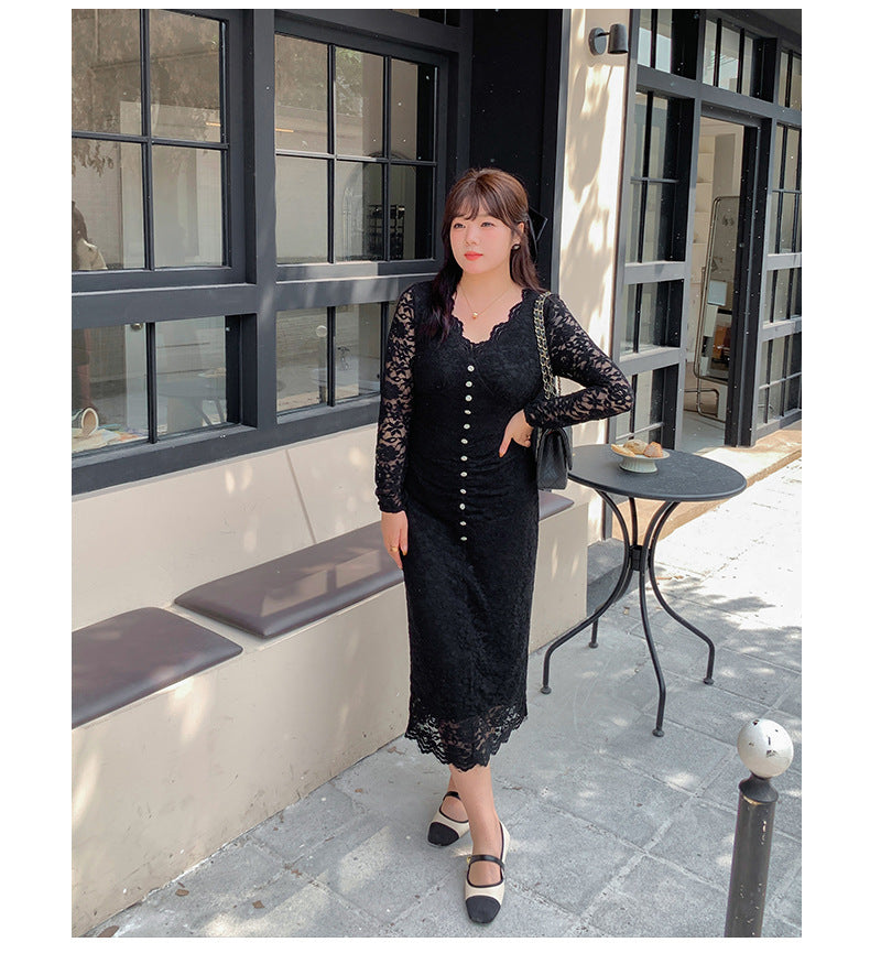 大きいサイズ レディース レースのVネックワンピース LL 3L 4L 5L