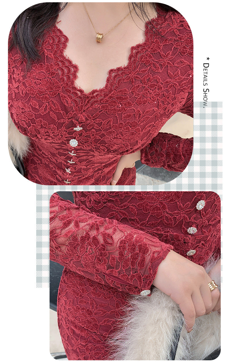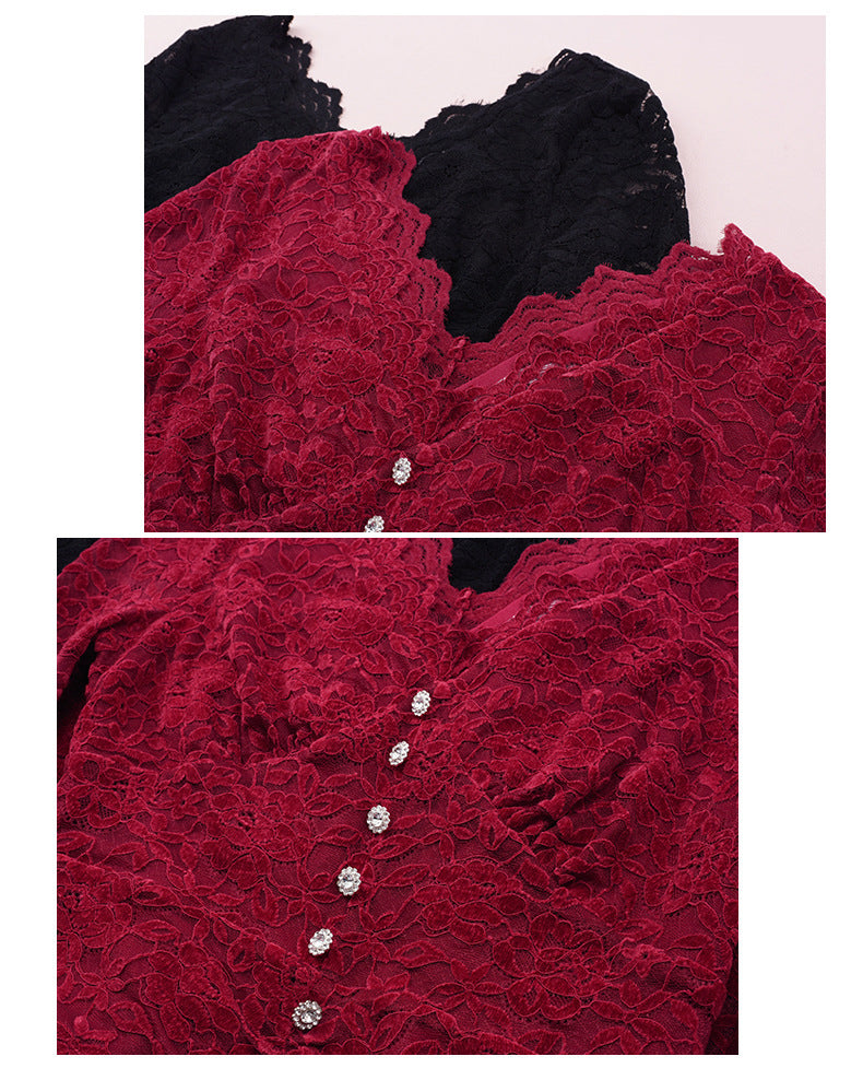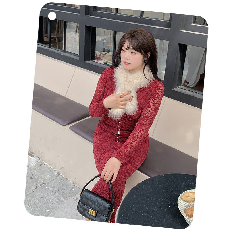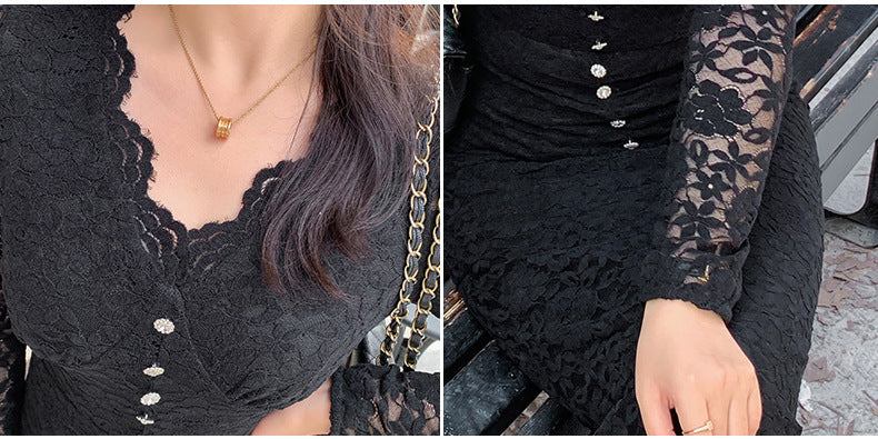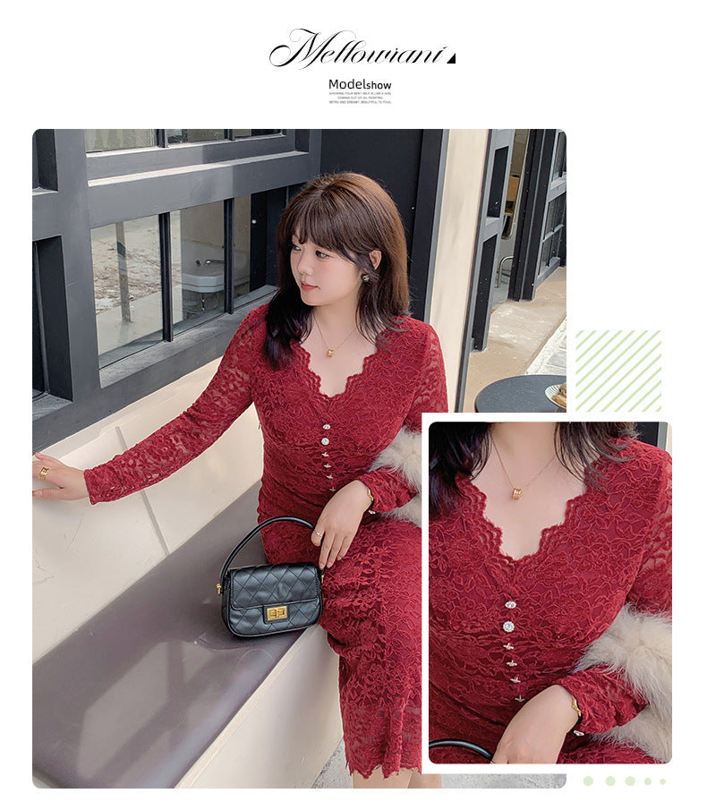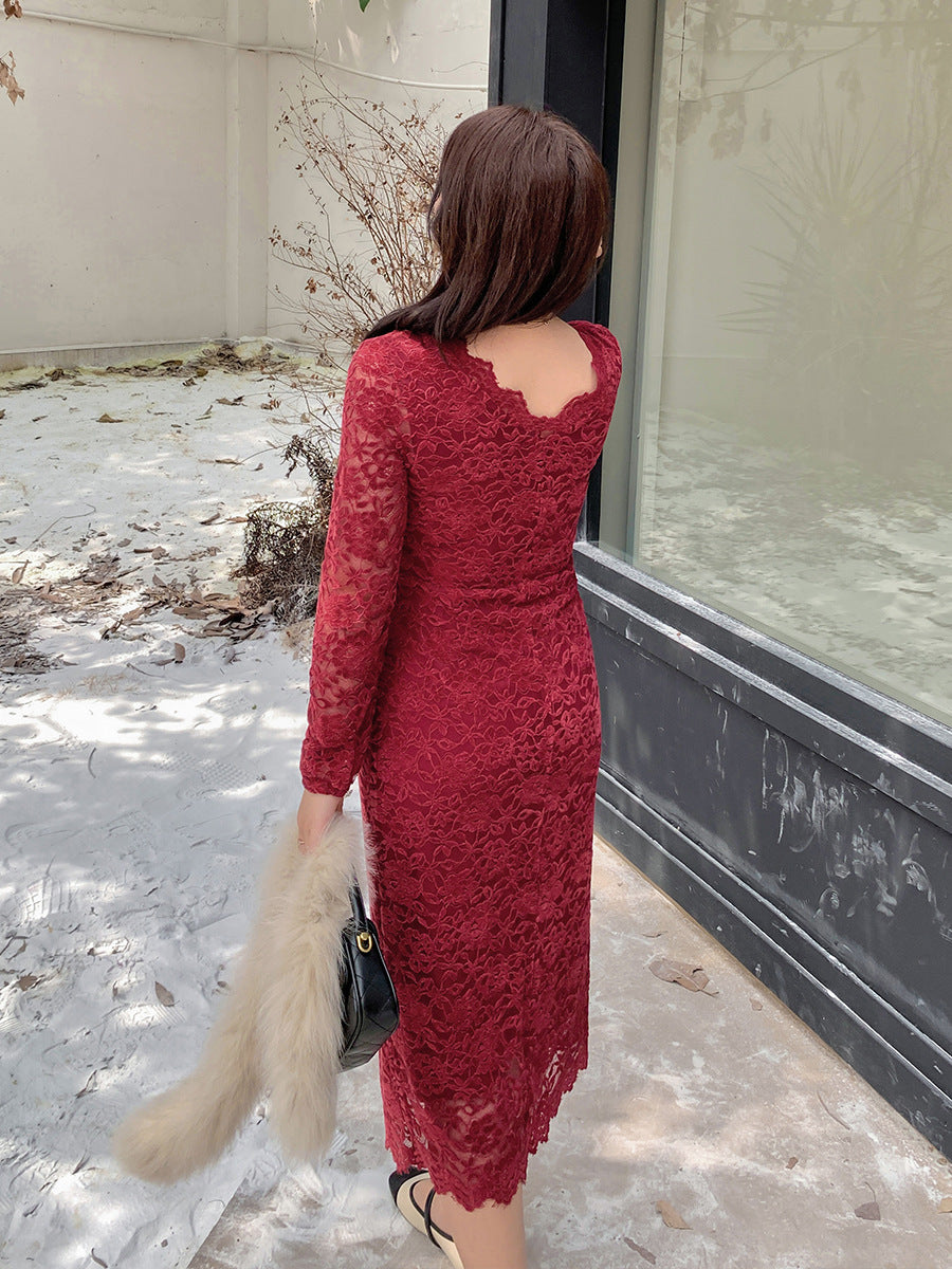 上品かつセクシーな魅力が詰まった、レースのVネックワンピース。繊細なレースで、女性らしいシルエットを際立たせます。Vネックデザインが洗練された印象を与え、華やかな場面でも活躍すること間違いなし。自信を持って輝きたい日にぴったりな一着です。シンプルなアクセサリーと組み合わせて、さりげない大人の魅力を演出しましょう。特別な一日を彩るワンピースです。
