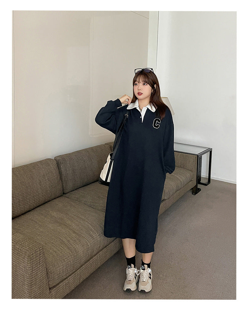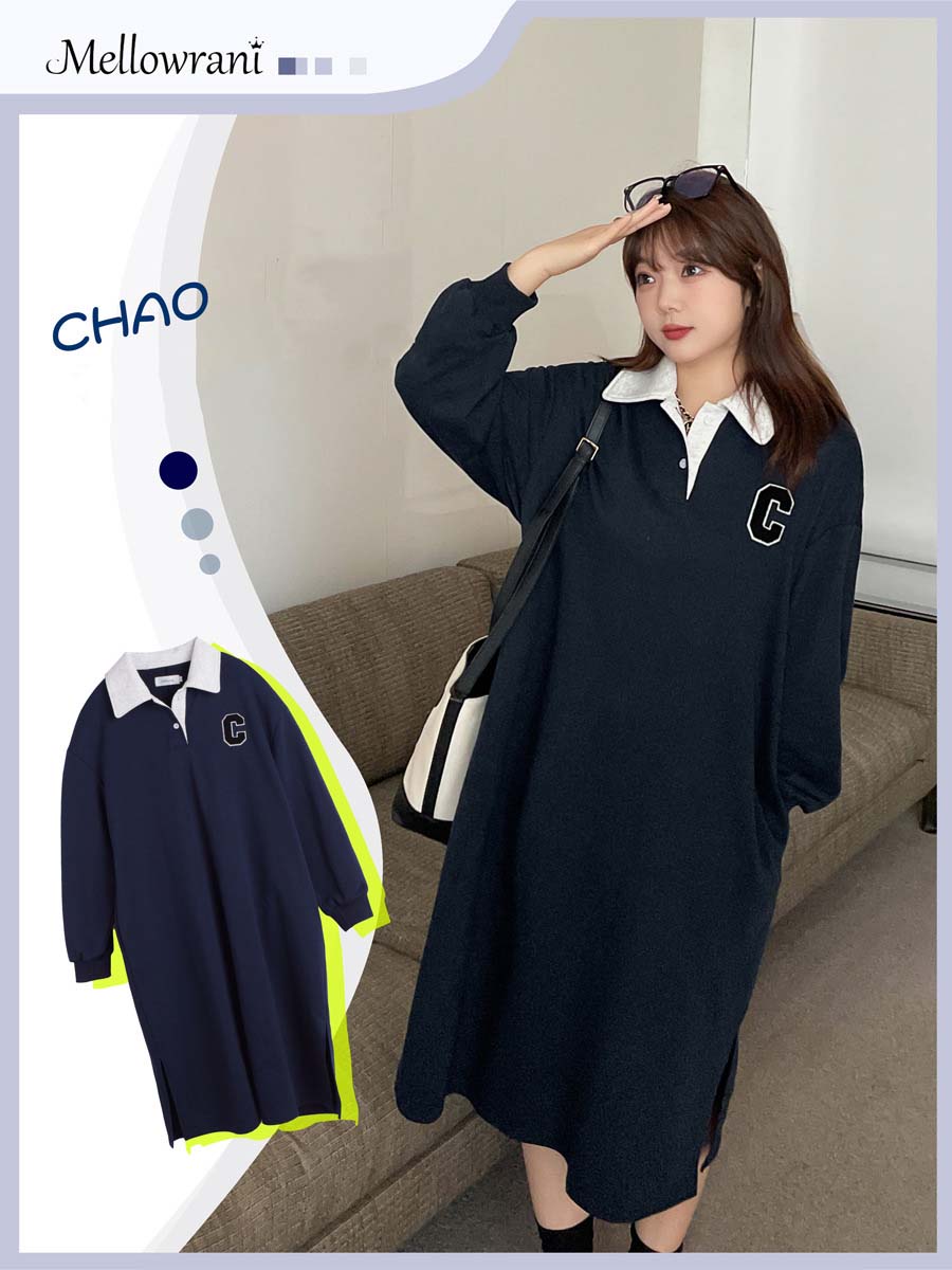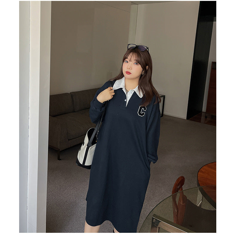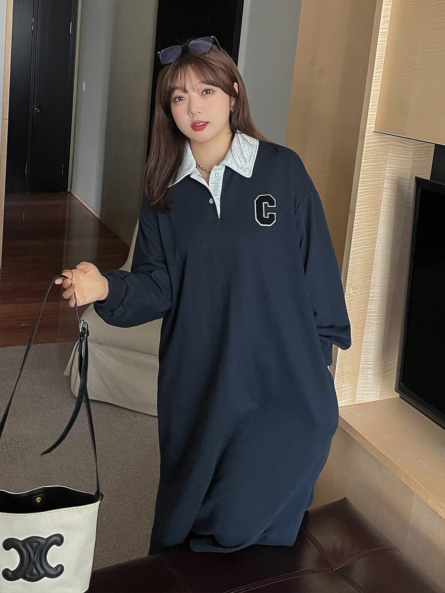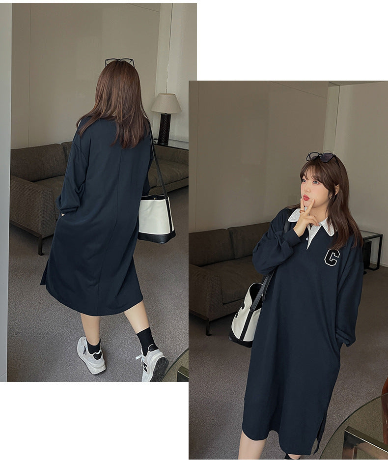 大きいサイズ レディース ロングポロシャツワンピース LL 3L 4L 5L