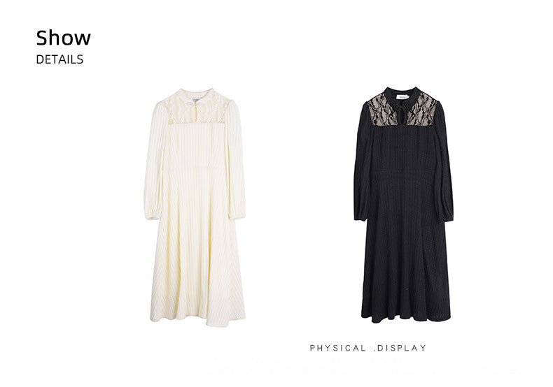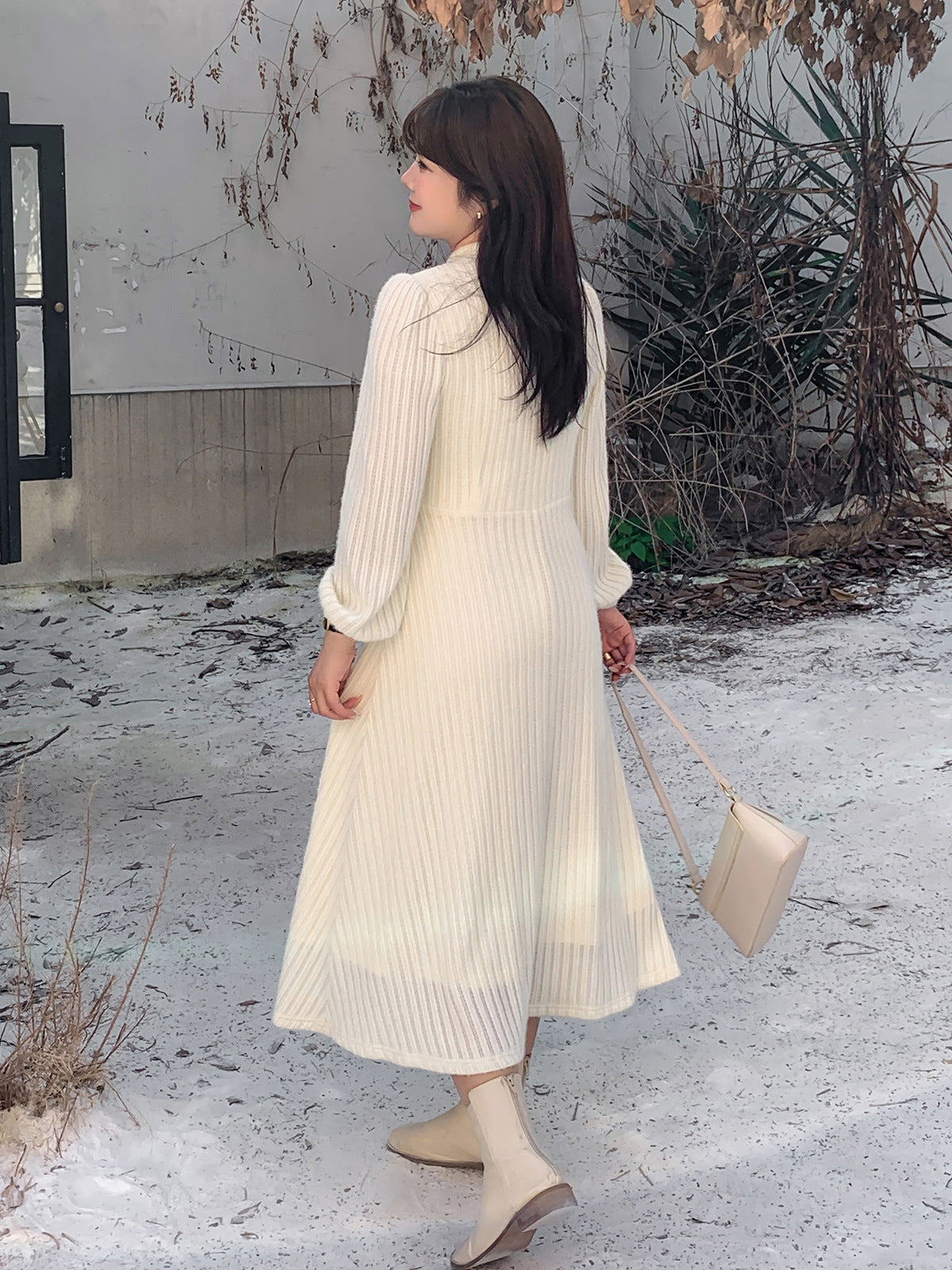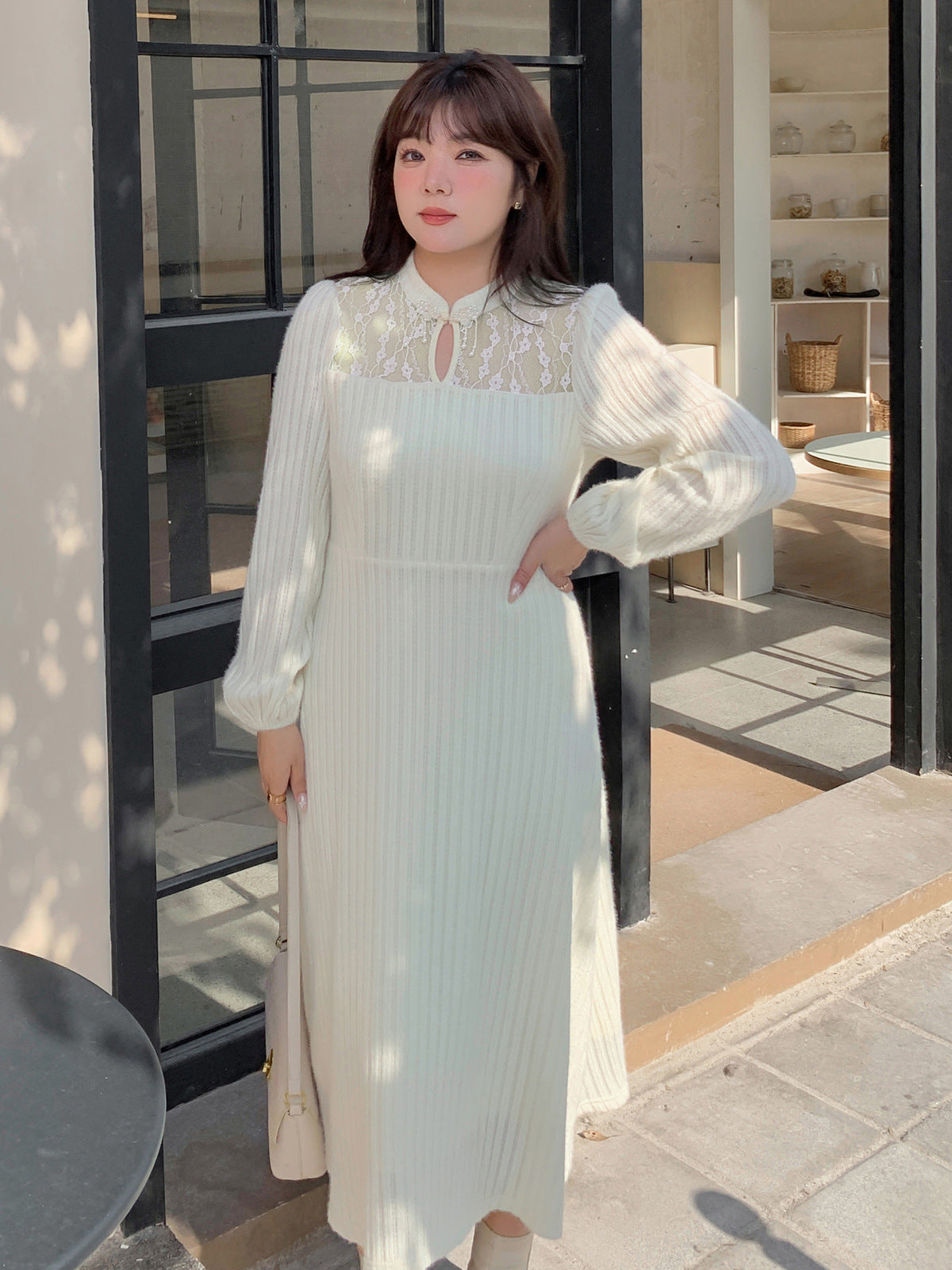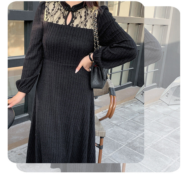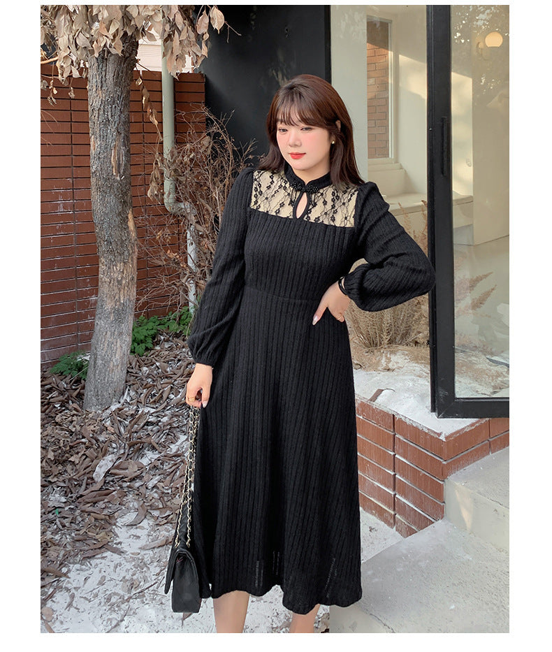 チャイナ風レースワンピース。暖かみのある素材とエレガントなレースデザインが絶妙に組み合わさり、上品な雰囲気を醸し出します。ボディラインを美しく演出するシルエットで、着るだけで女性らしい魅力を引き立ててくれます。クラシカルな雰囲気とモダンなデザインの融合が魅力の一着です。寒い季節でも、華やかでおしゃれな装いを楽しみたい方にぜひおすすめします。