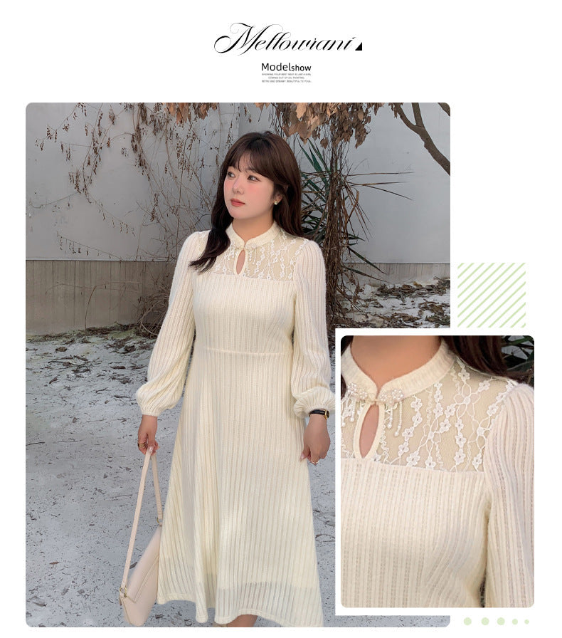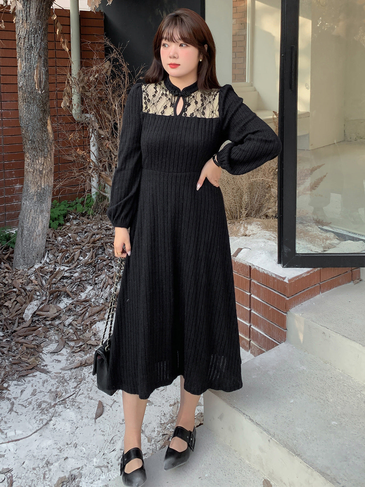 大きいサイズ レディース チャイナ風レースワンピース LL 3L 4L 5L