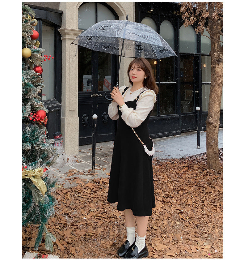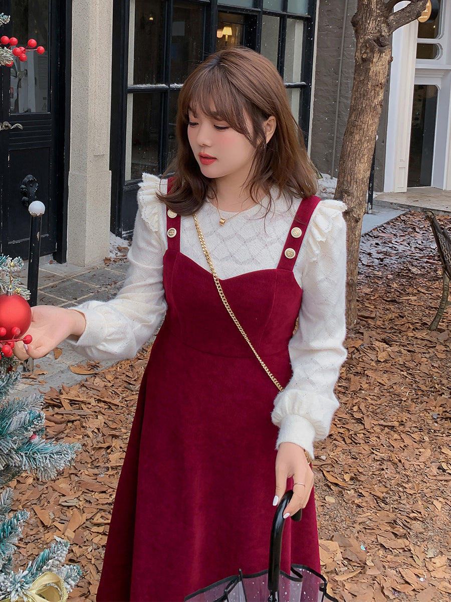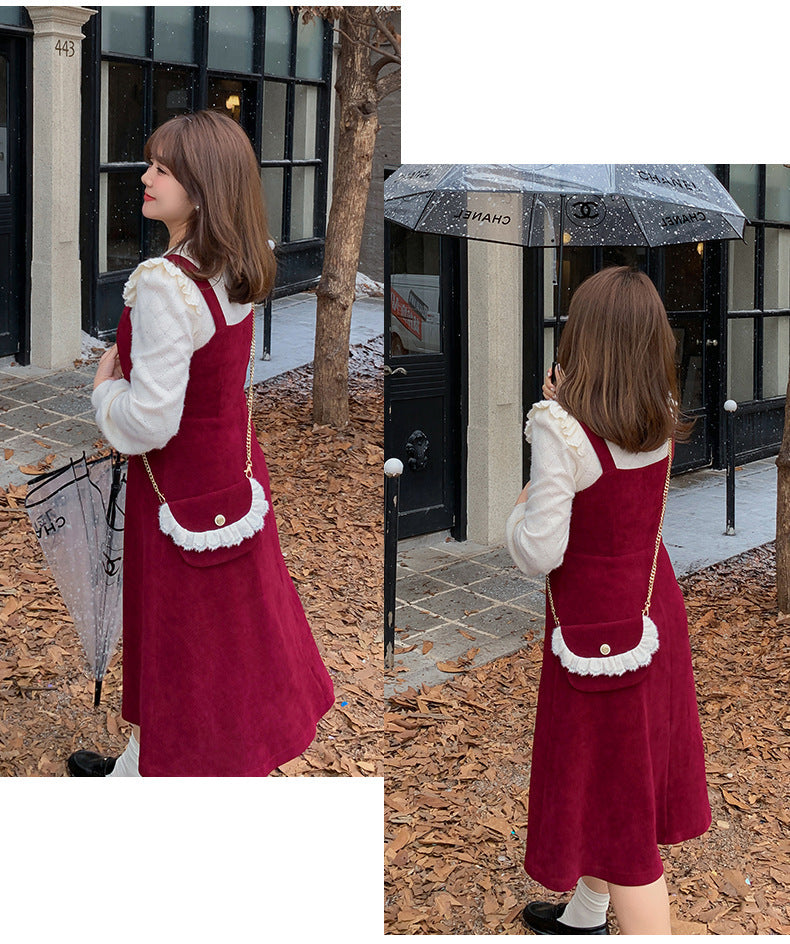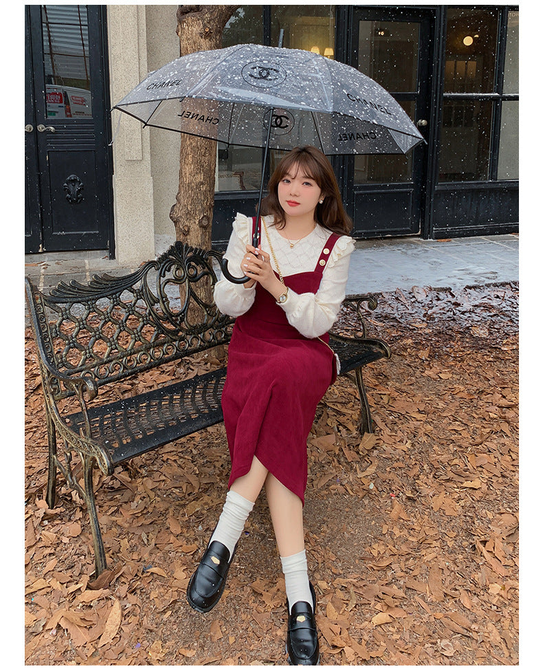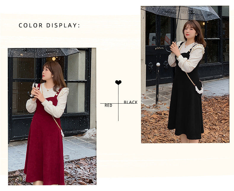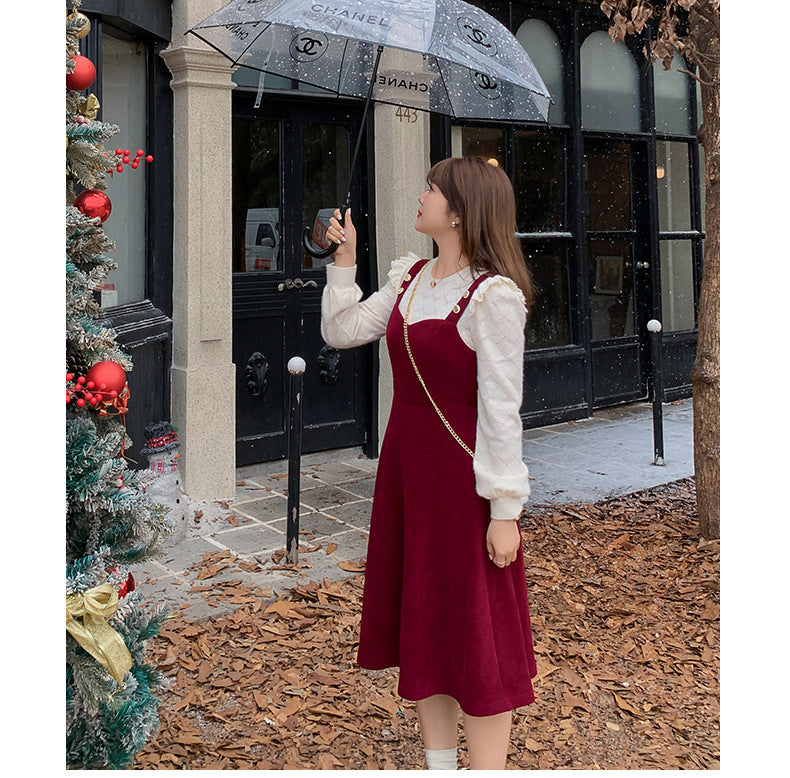 大きいサイズ レディース コーデュロイのレトロワンピース+フリルパフスリーブブラウス LL 3L 4L 5L