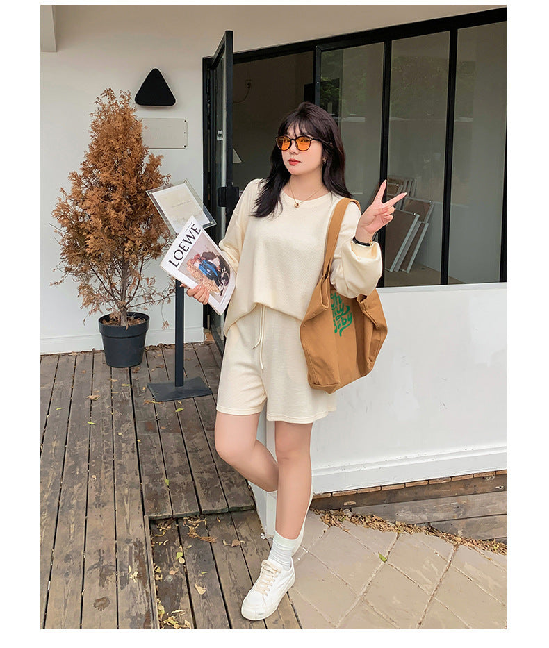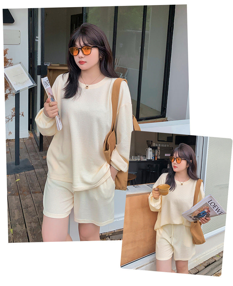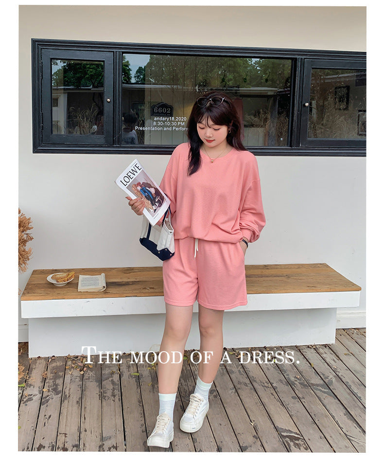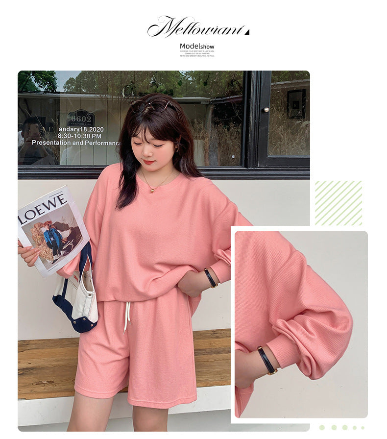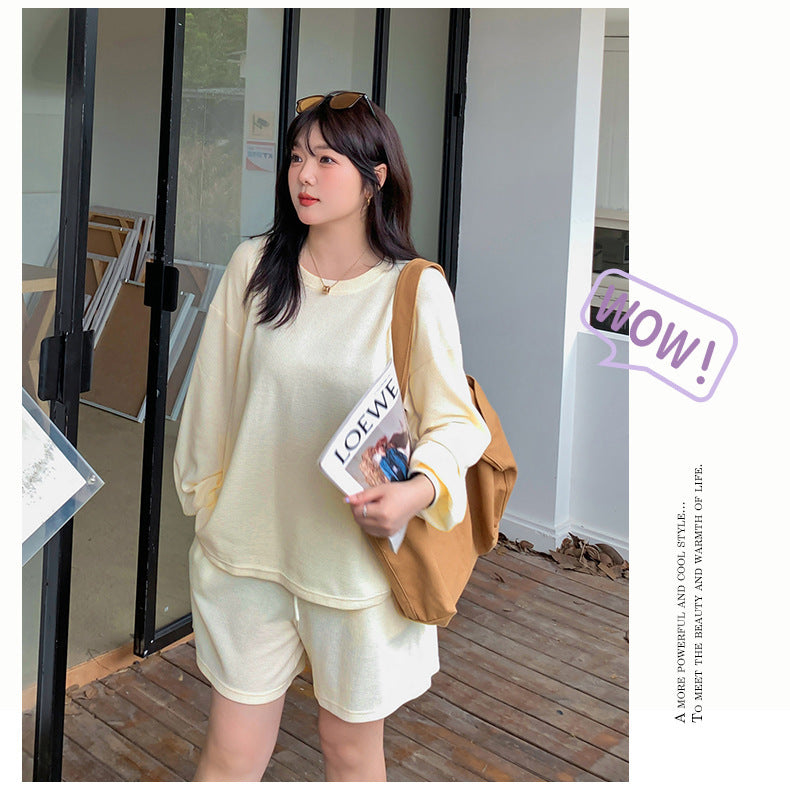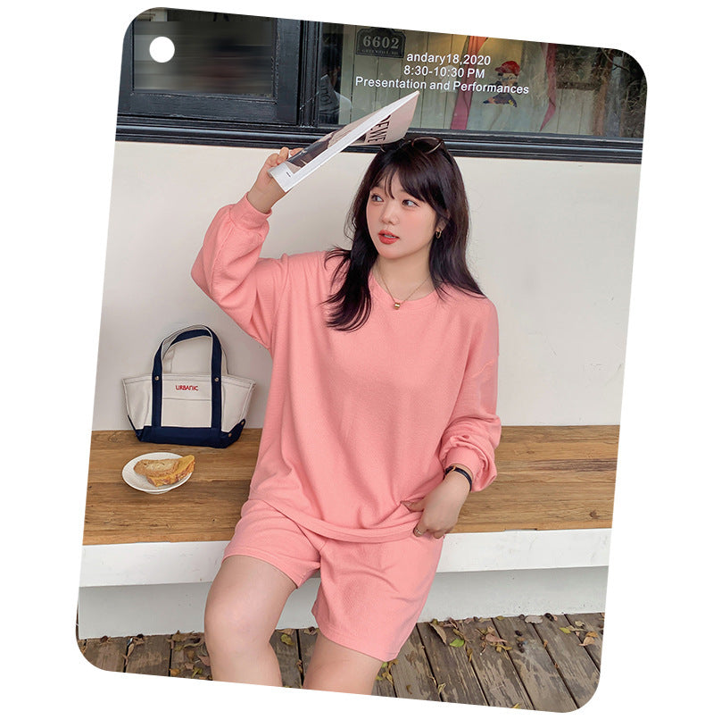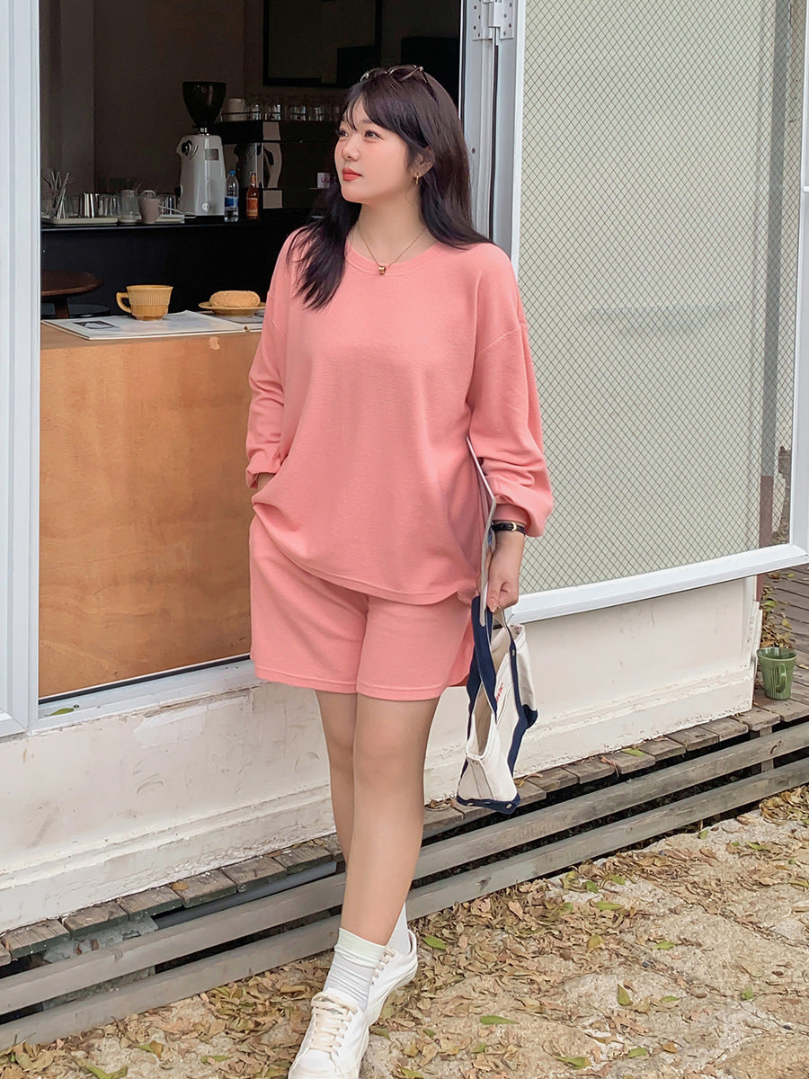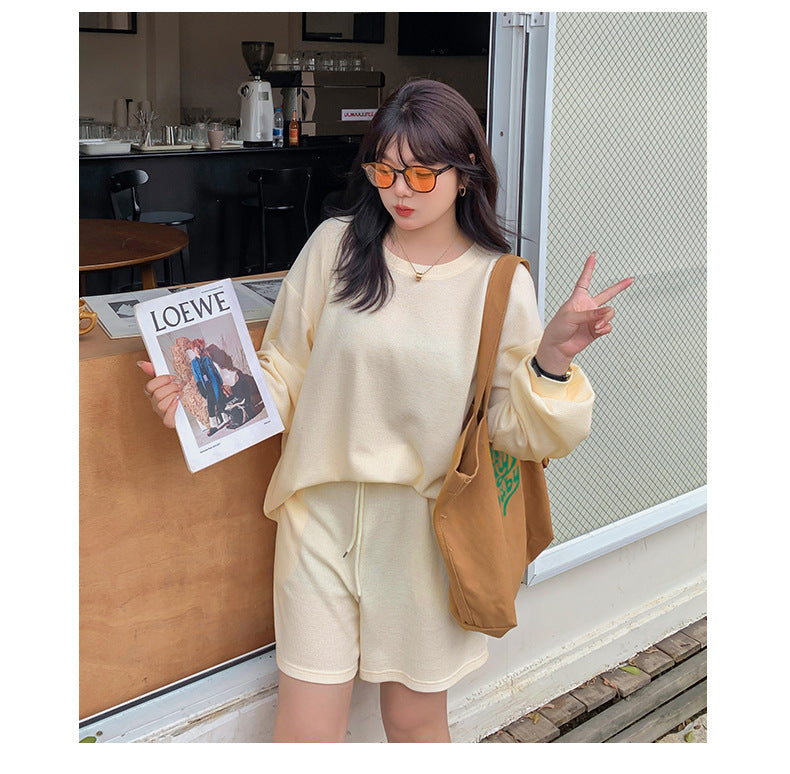 ゆるカジのスウェットトップス+ハーフパンツセット!大きめのサイズで女性らしさをキープしつつ、リラックス感も兼ね備えた一着です。自然なシルエットが体型をカバーし、動きやすく快適な着心地を実現。上下セットで着回し力も抜群!リラックスしながらもオシャレを楽しみたい方におすすめのアイテムです。