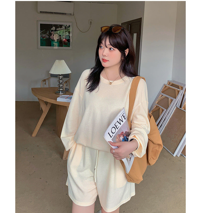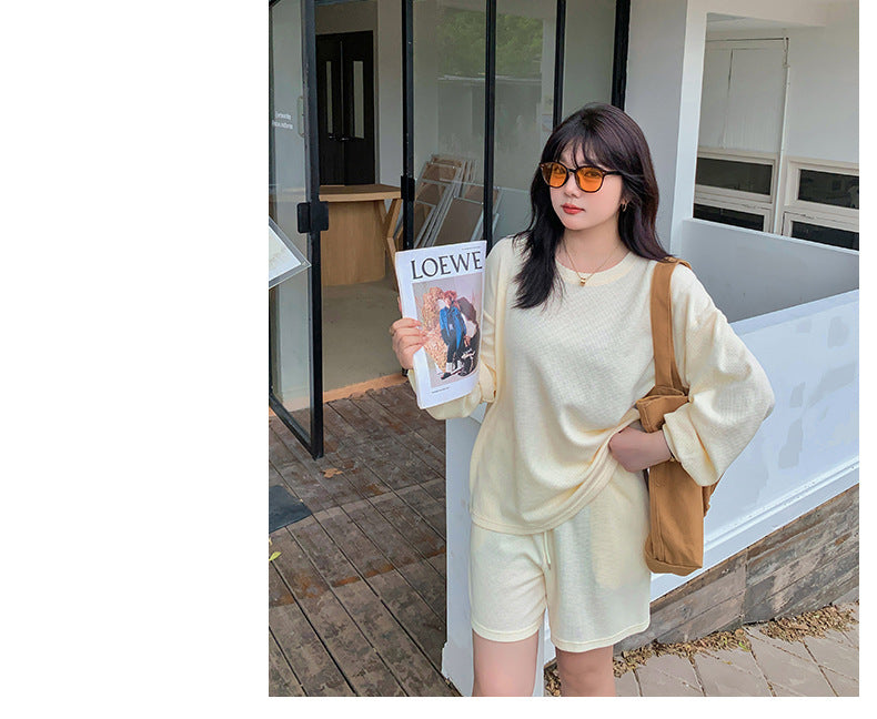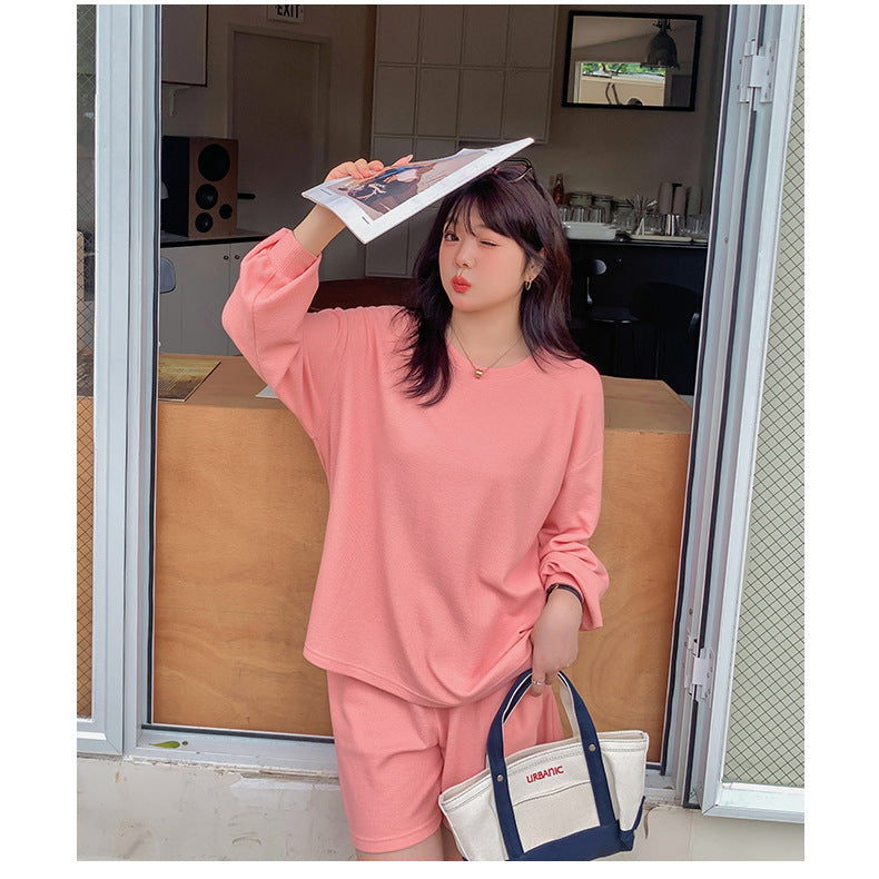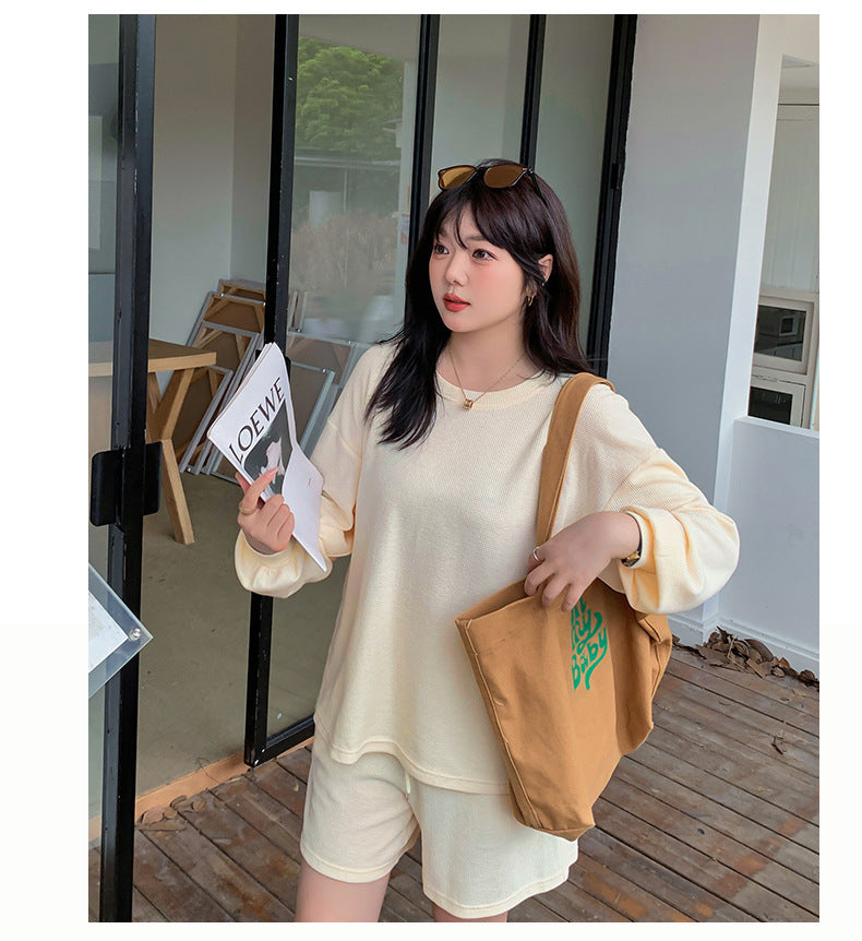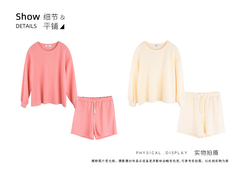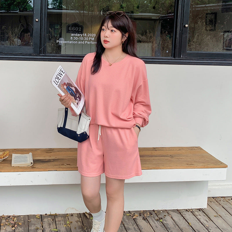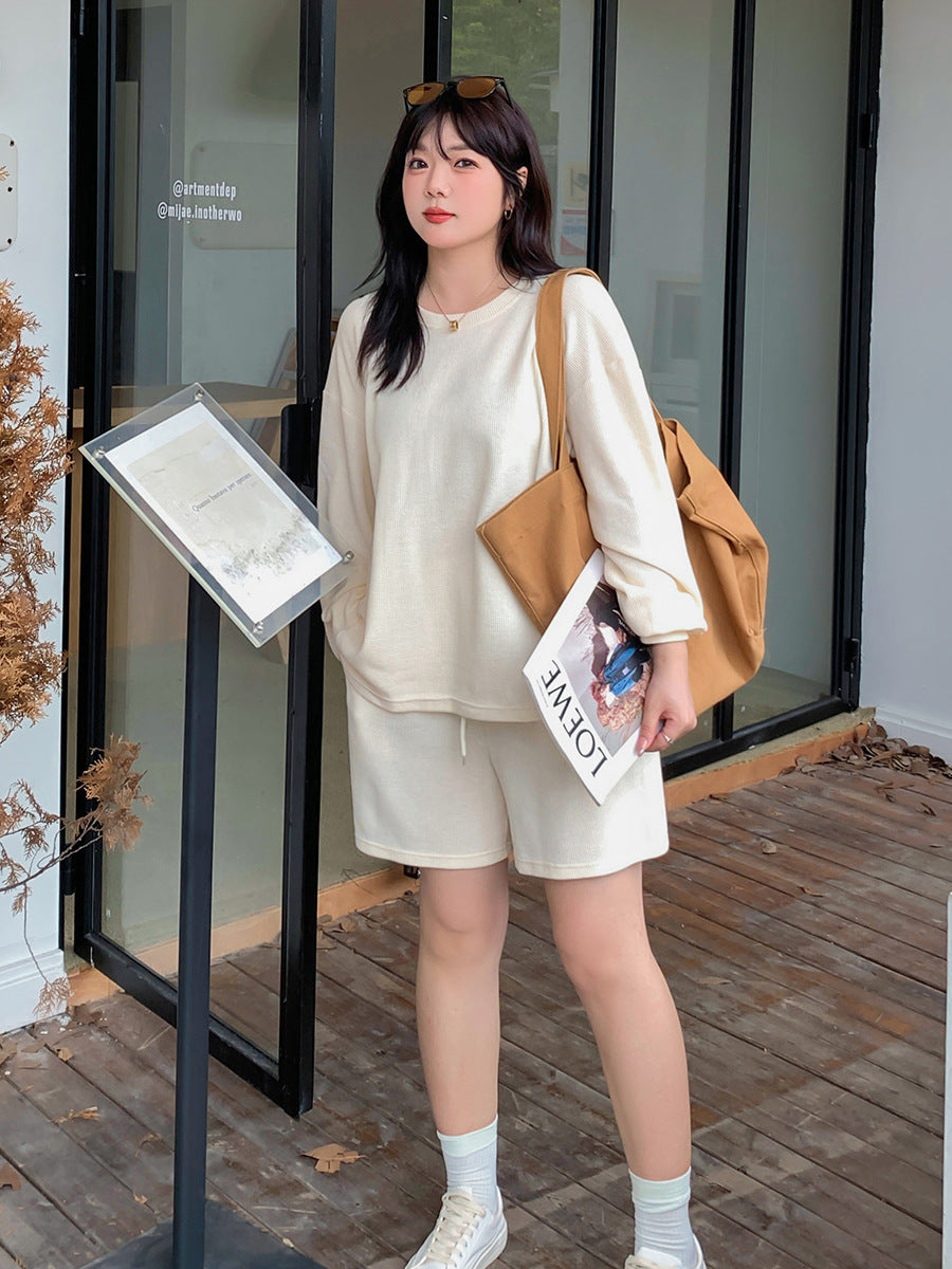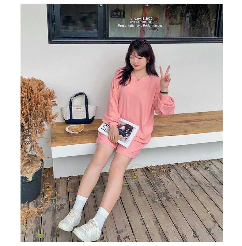 ゆるカジのスウェットトップス+ハーフパンツセット!大きめのサイズで女性らしさをキープしつつ、リラックス感も兼ね備えた一着です。自然なシルエットが体型をカバーし、動きやすく快適な着心地を実現。上下セットで着回し力も抜群!リラックスしながらもオシャレを楽しみたい方におすすめのアイテムです。