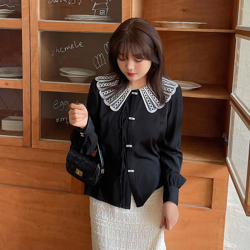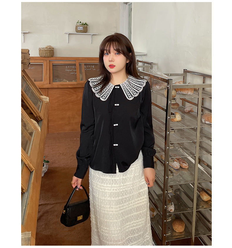 大きいサイズ レディース レースカラーのラウンドネックブラウス LL 3L 4L 5L