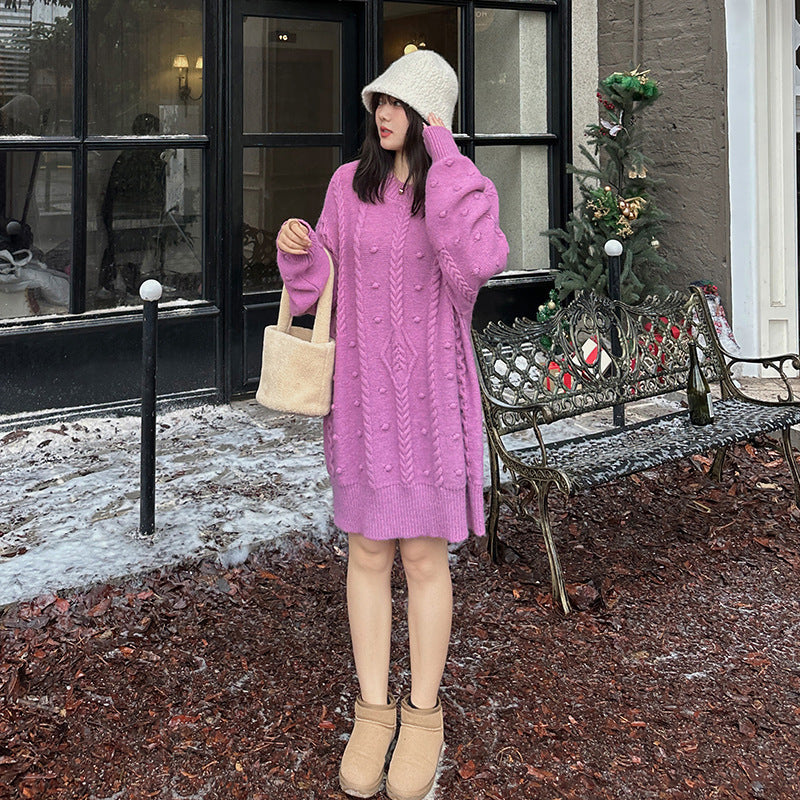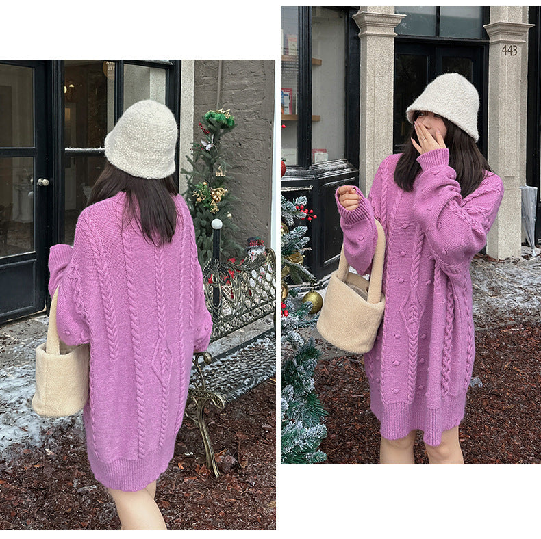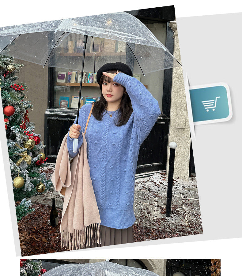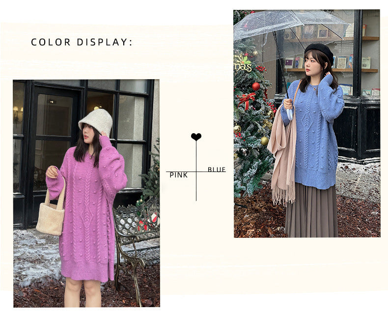 大きいサイズ レディース チュニック丈ケーブルニット LL 3L 4L 5L