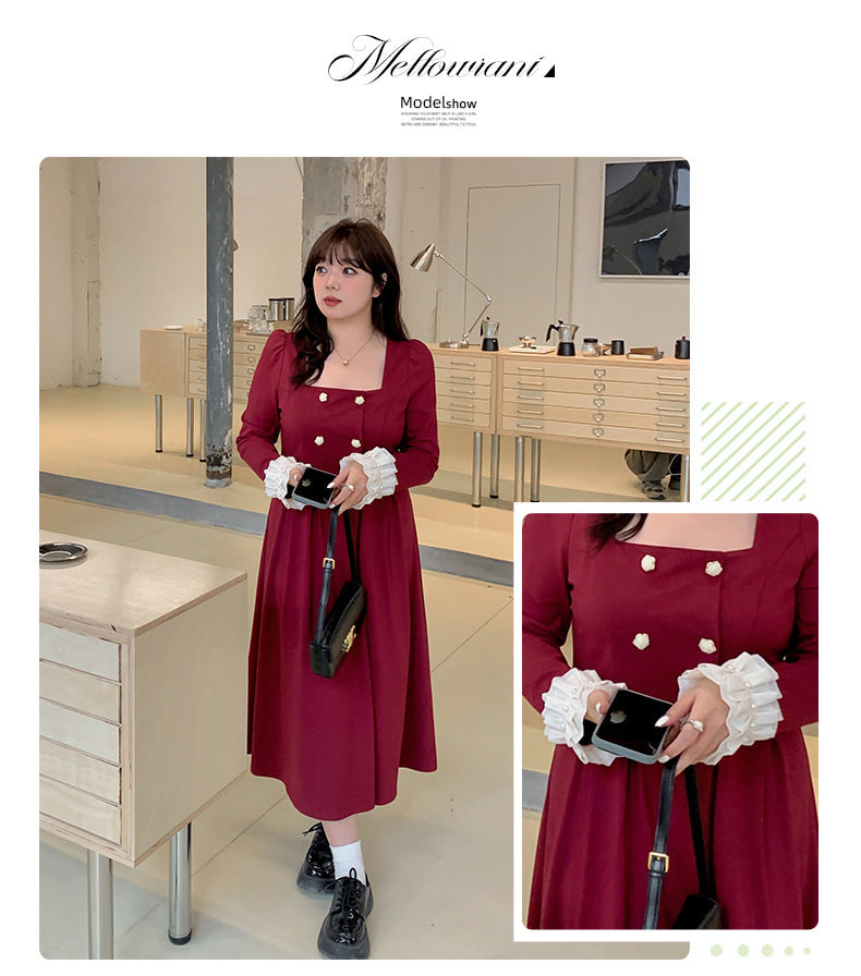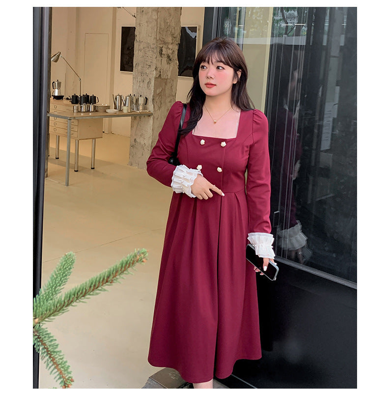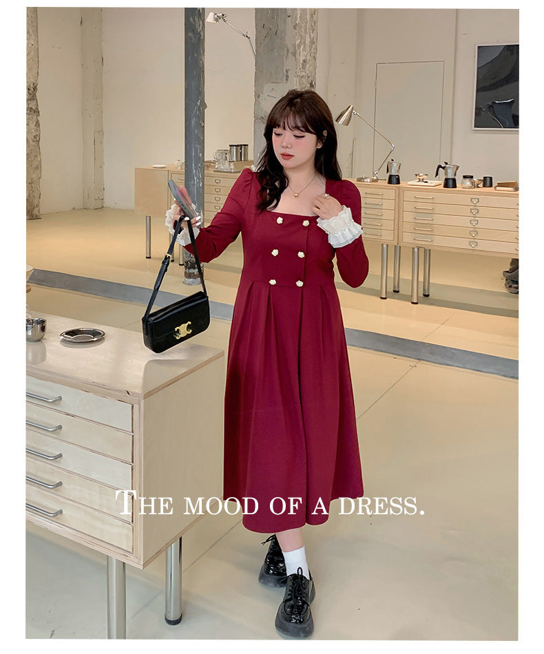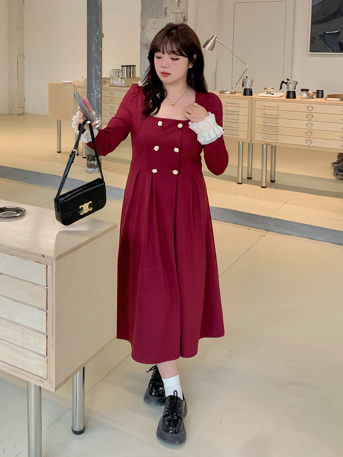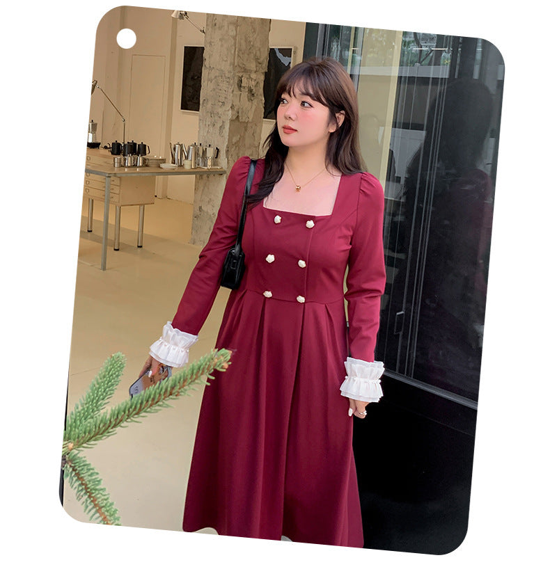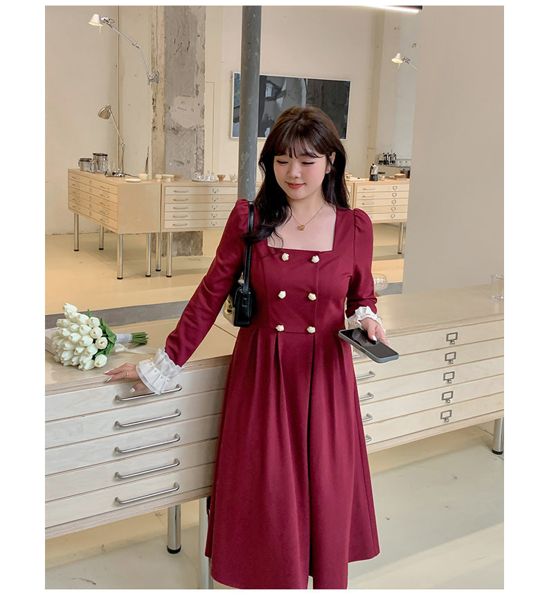 大きいサイズ レディース ダブルブレストのスクエアネックワンピース LL 3L 4L 5L
