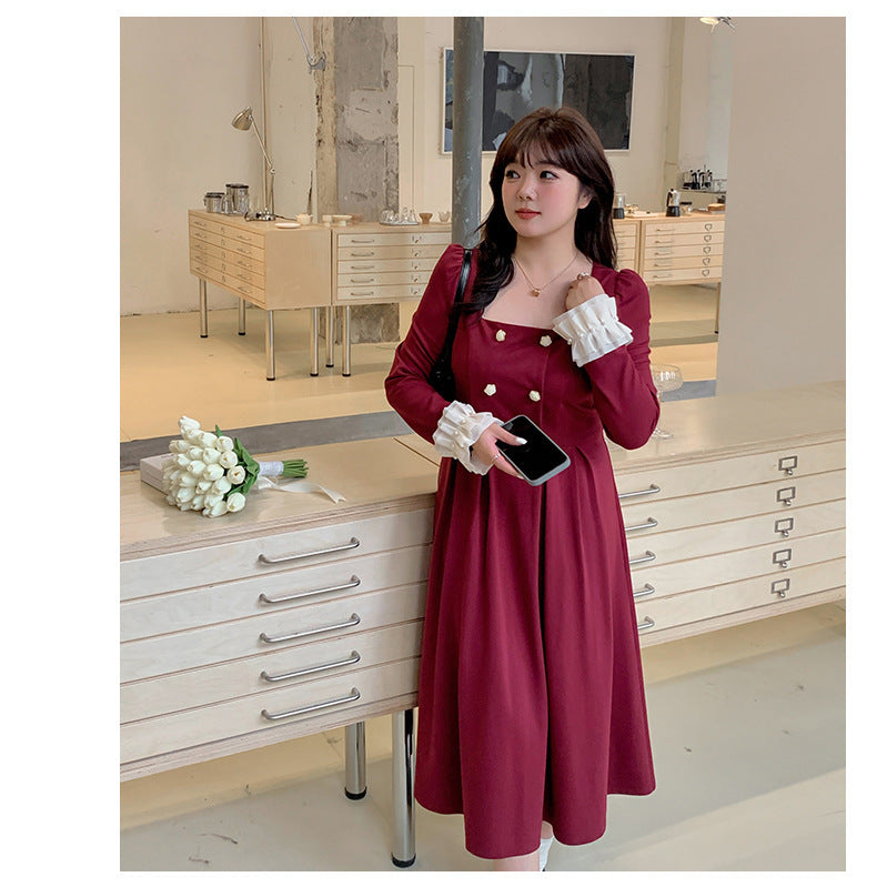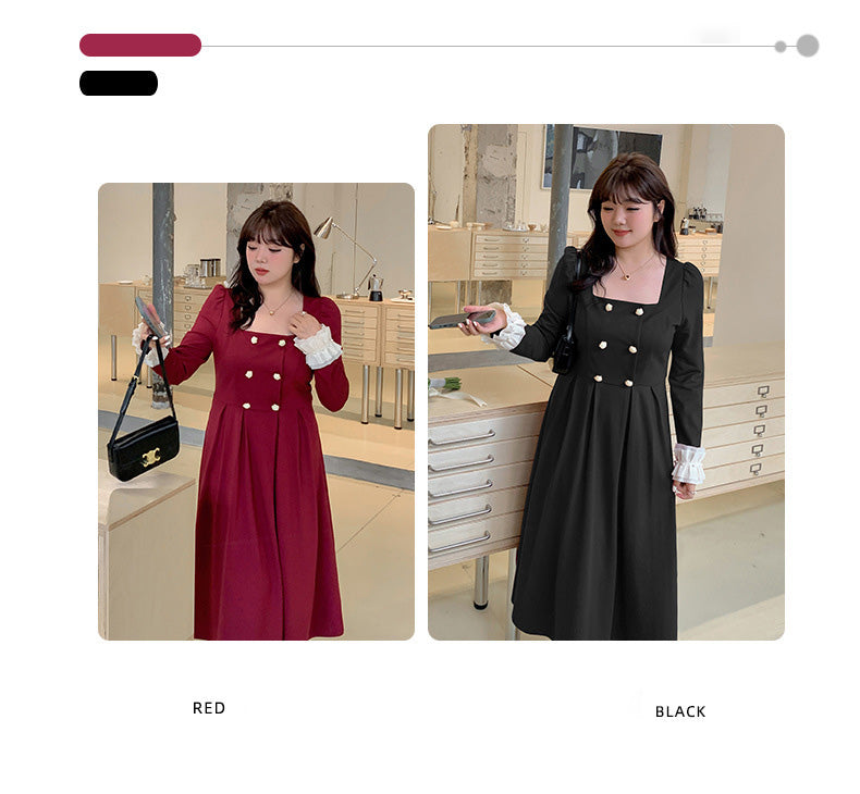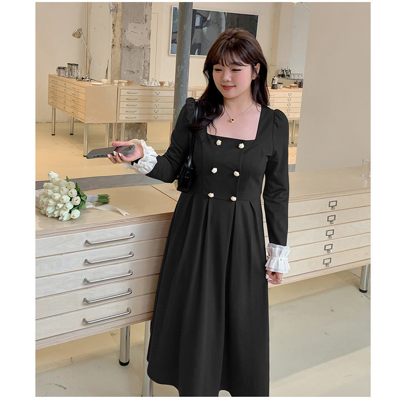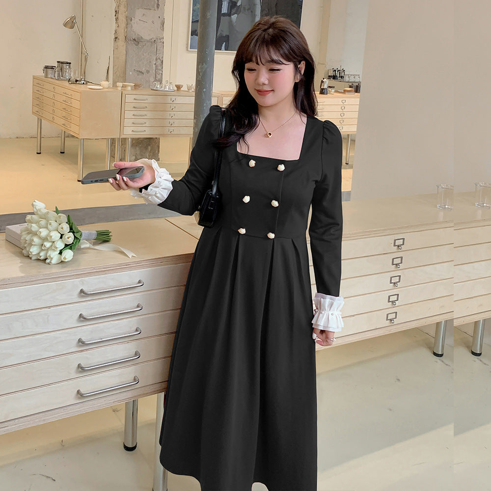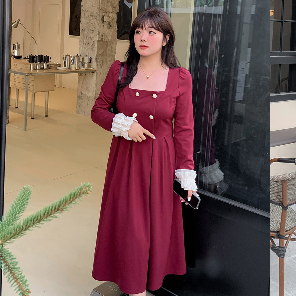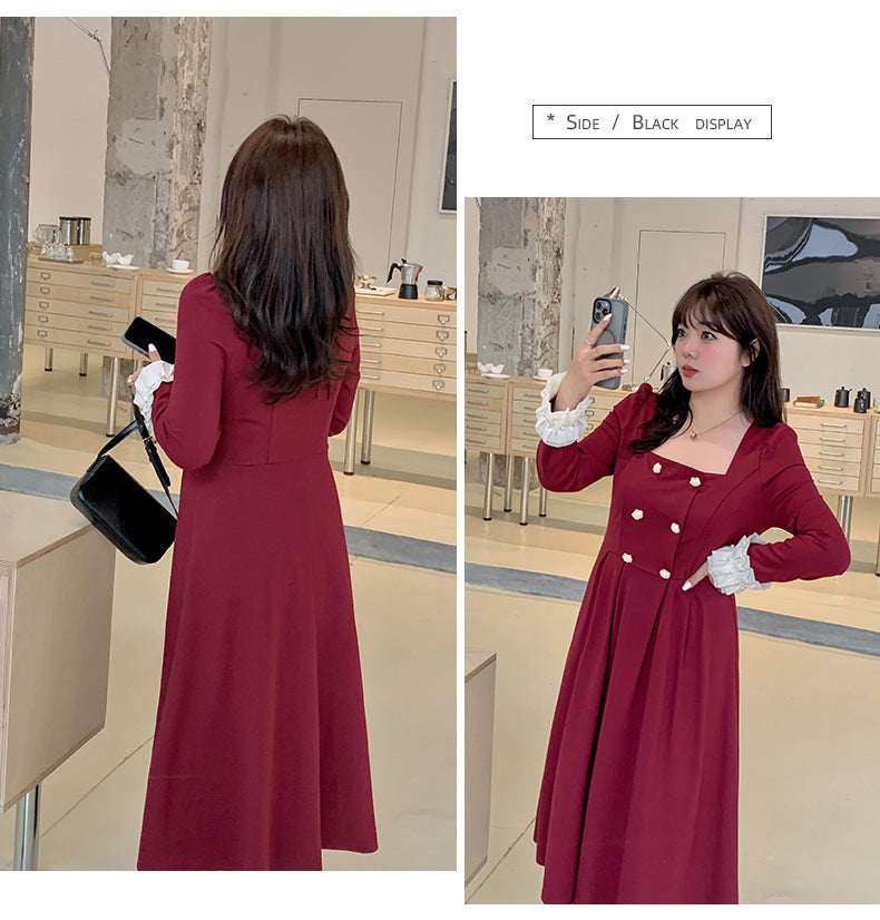 大きいサイズ レディース ダブルブレストのスクエアネックワンピース LL 3L 4L 5L