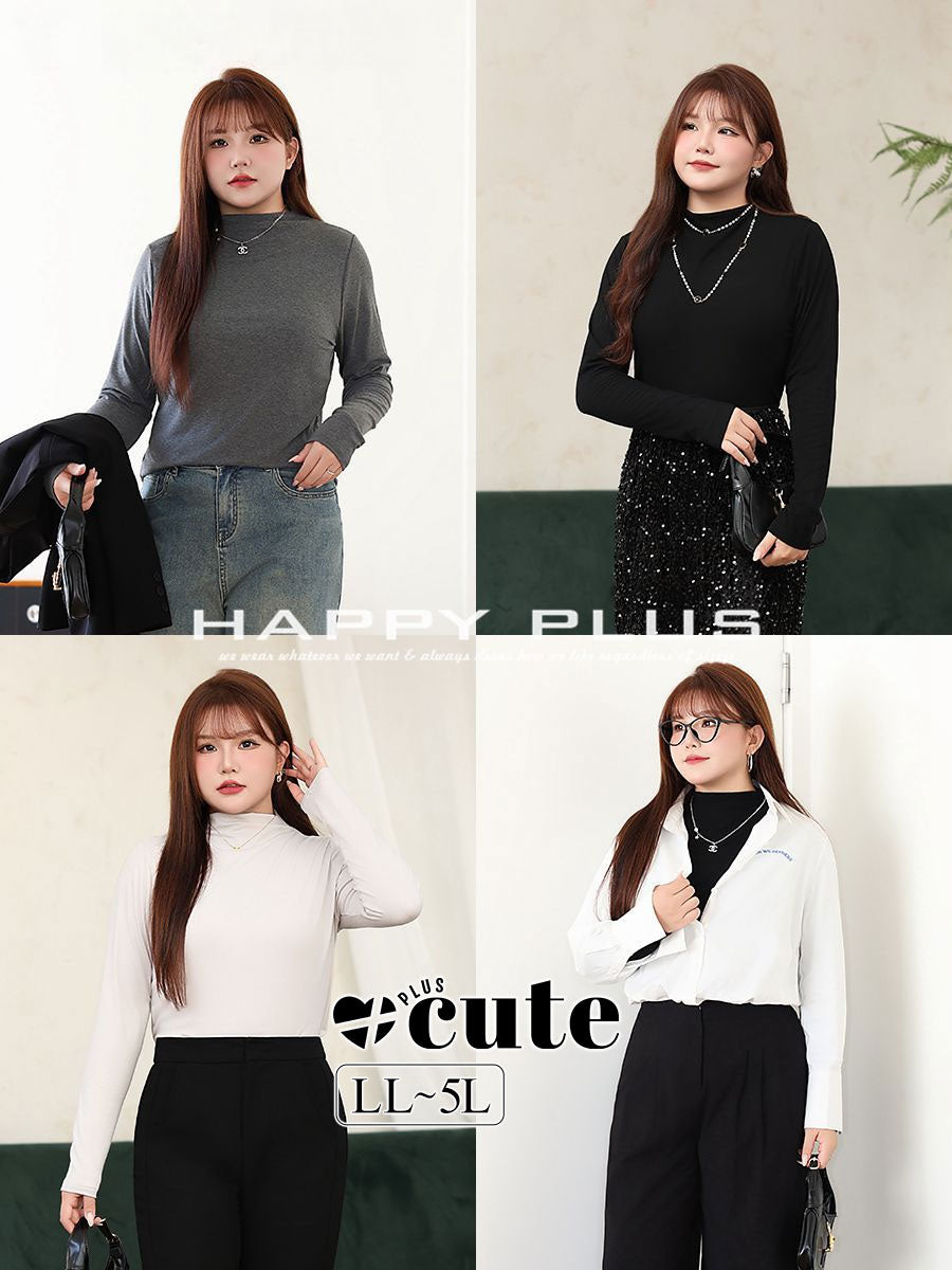 大きいサイズ レディース ハイネック長袖スタイリッシュインナーシャツ LL 3L 4L 5L