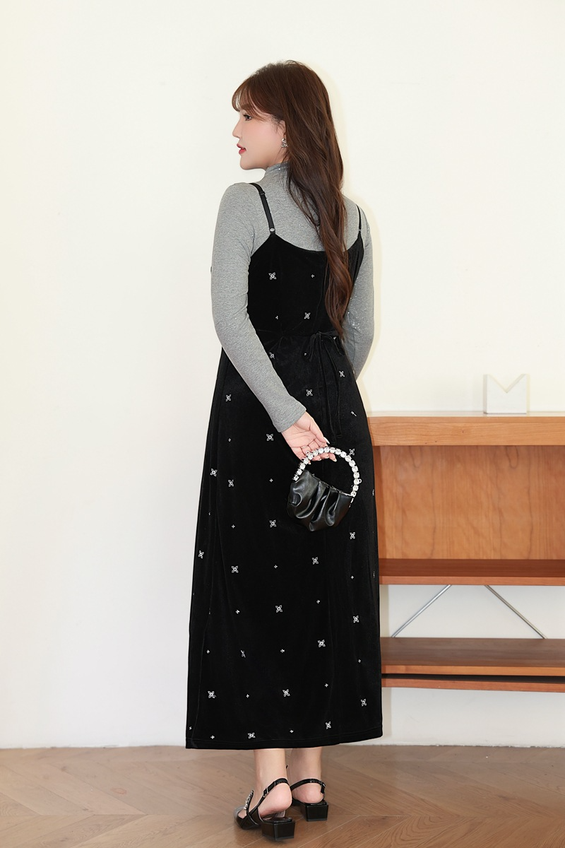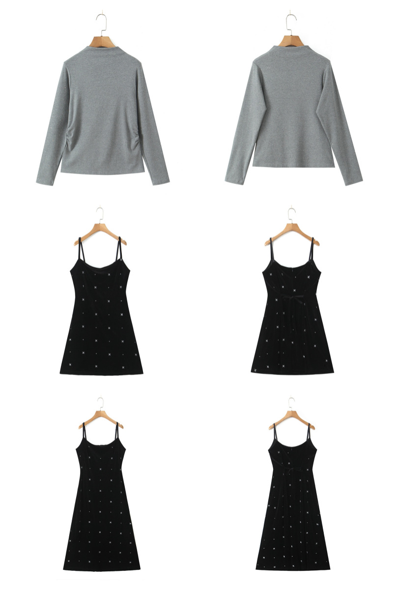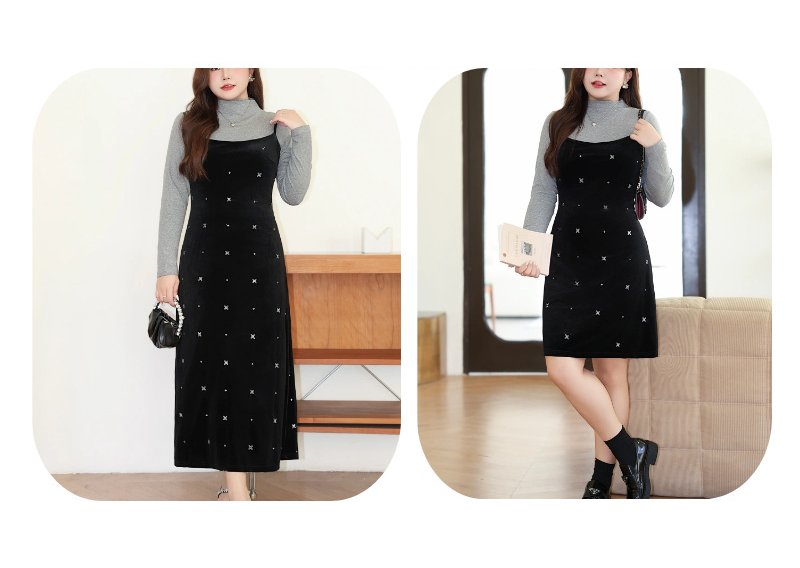 絶妙なスタイルのベルベットキャミソールワンピースは、ロングとショートの両方のスタイルで展開され、フランスのエレガンスを備えながら若々しい活力を醸し出します。全体的なフィット感は非常に魅力的で、下に小さめのトップスを重ね着することで、スリム効果を期待できます。わずかに絞られたウエストは、ほとんどの体型にフィットします。滑らかなスクエア/ラウンドネックラインは、魅力的なだけでなく、スリムな印象を与え、美しい肩とネックラインを際立たせます。繊細で細いストラップは、フロントはベルベット生地で作られており、背面には体型をカバーできるよう調節可能な伸縮性のあるストラップが付いています。絞られたウエストは、締め付けすぎず、動きを制限せずに、体のラインを強調します。背面の調節可能なウエストゴムはさらに柔軟性を高め、フィット感とリラックス感の両方を実現します。背面に同系色の隠しジッパーが付いており、全体的な洗練さを高めています。Aラインスカートも魅力的なだけでなく、スリムな印象を与えます。ロングとショートの両方のバージョンをご用意しており、それぞれに独自の魅力があり、お客様のニーズに最適なものをお選びいただけます。