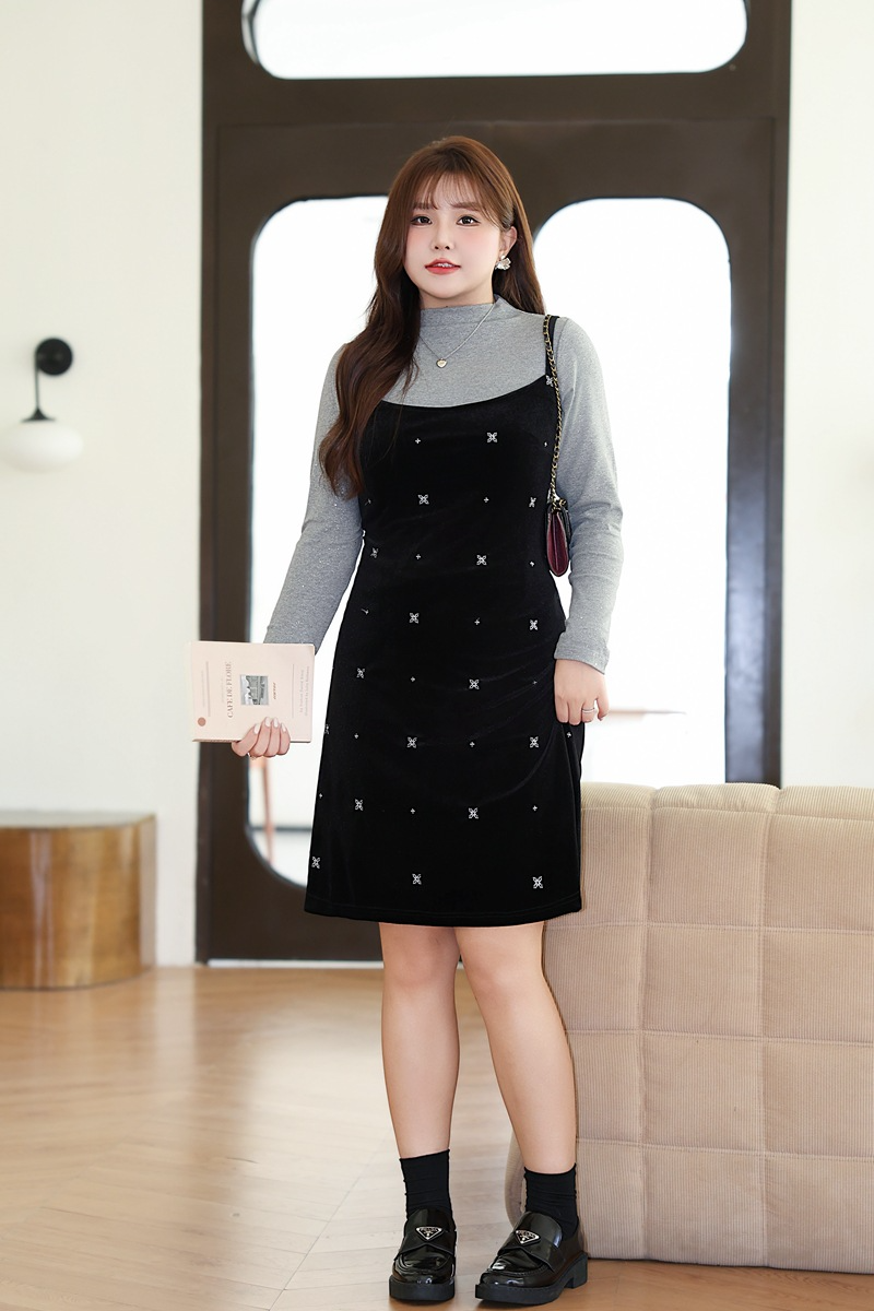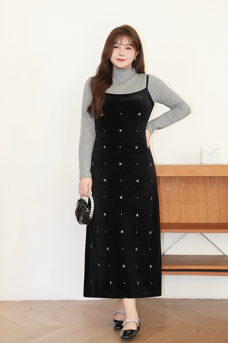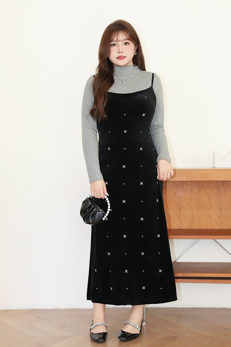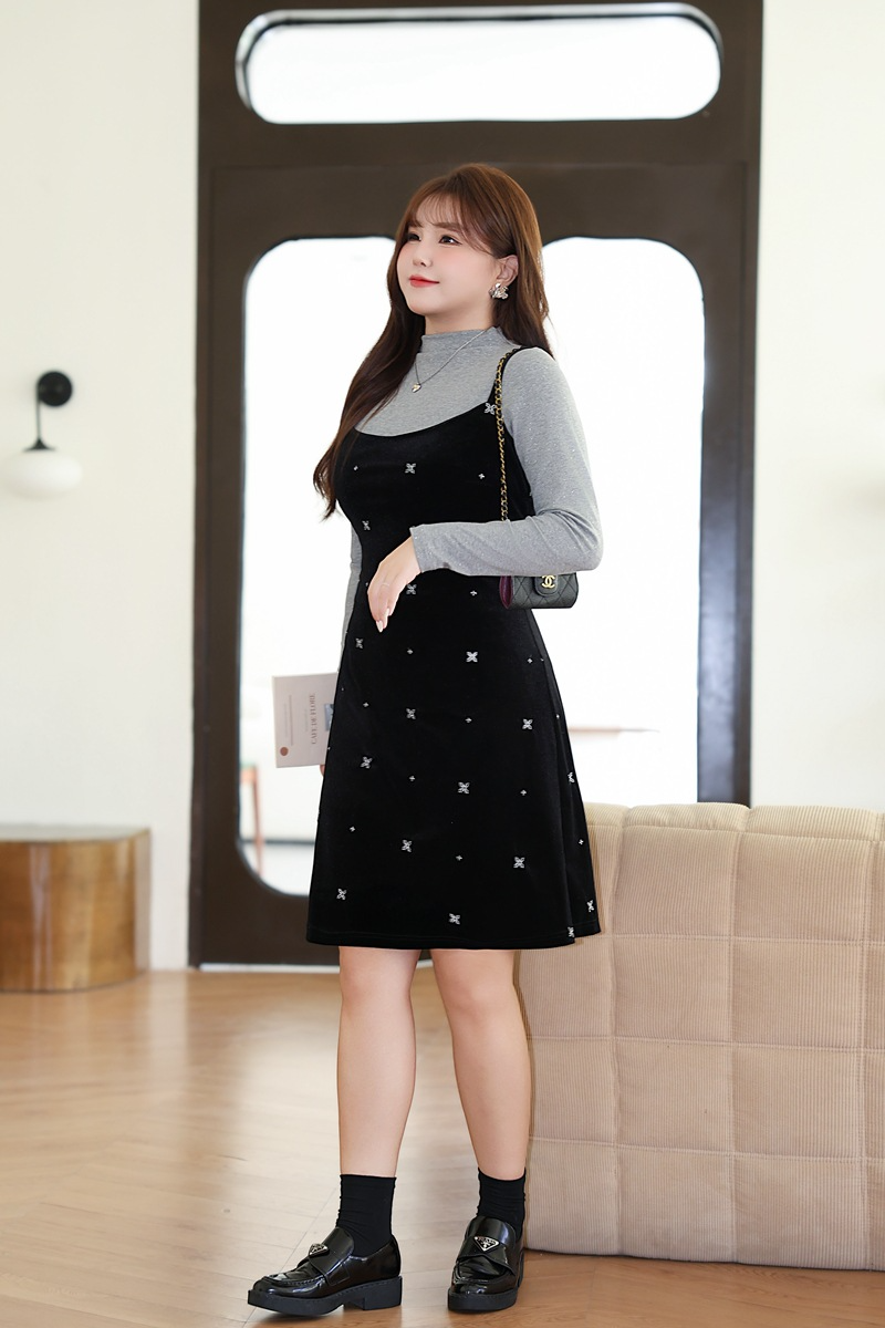 大きいサイズ レディース インナートップス+ベルベットキャミソールワンピース(ショート/ロング) LL 3L 4L 5L