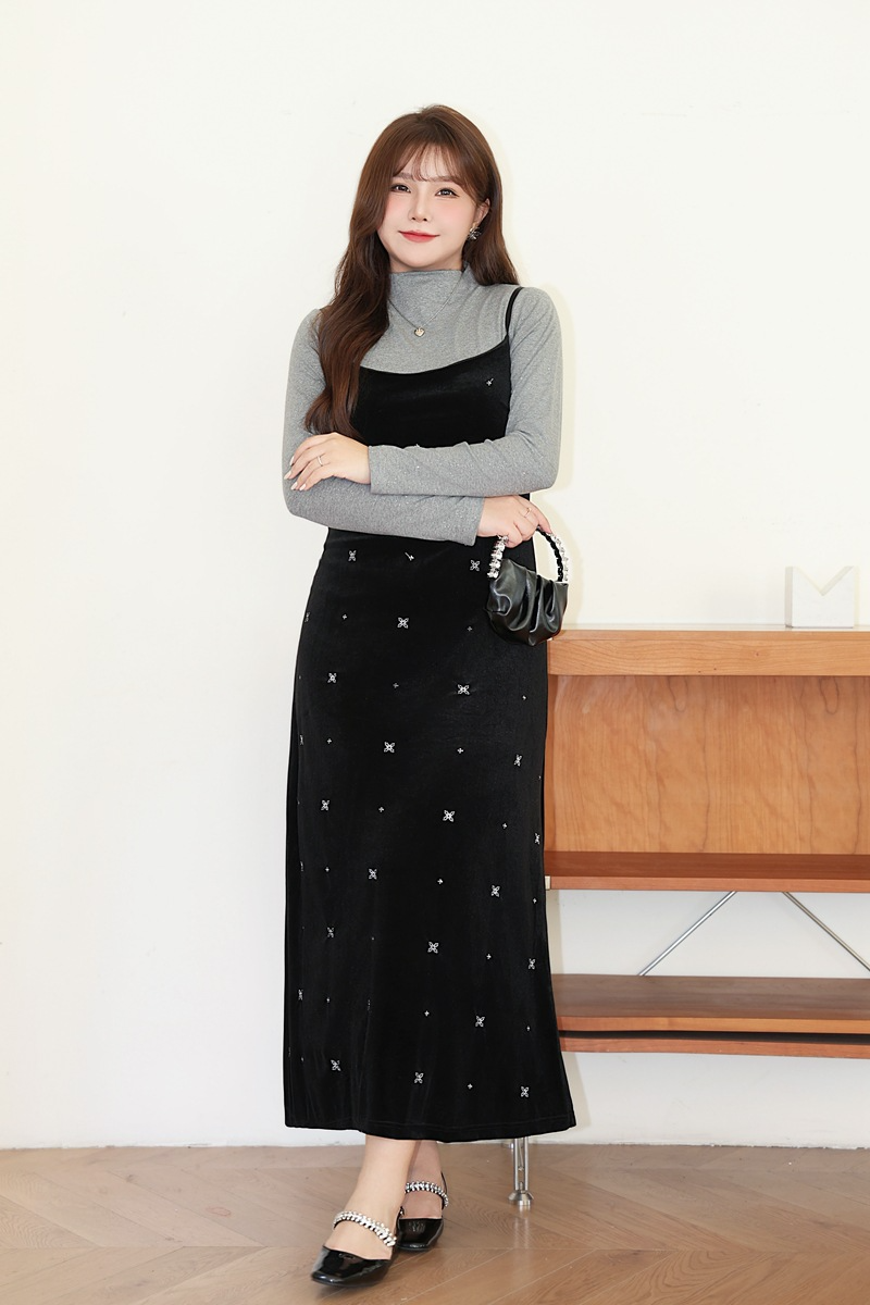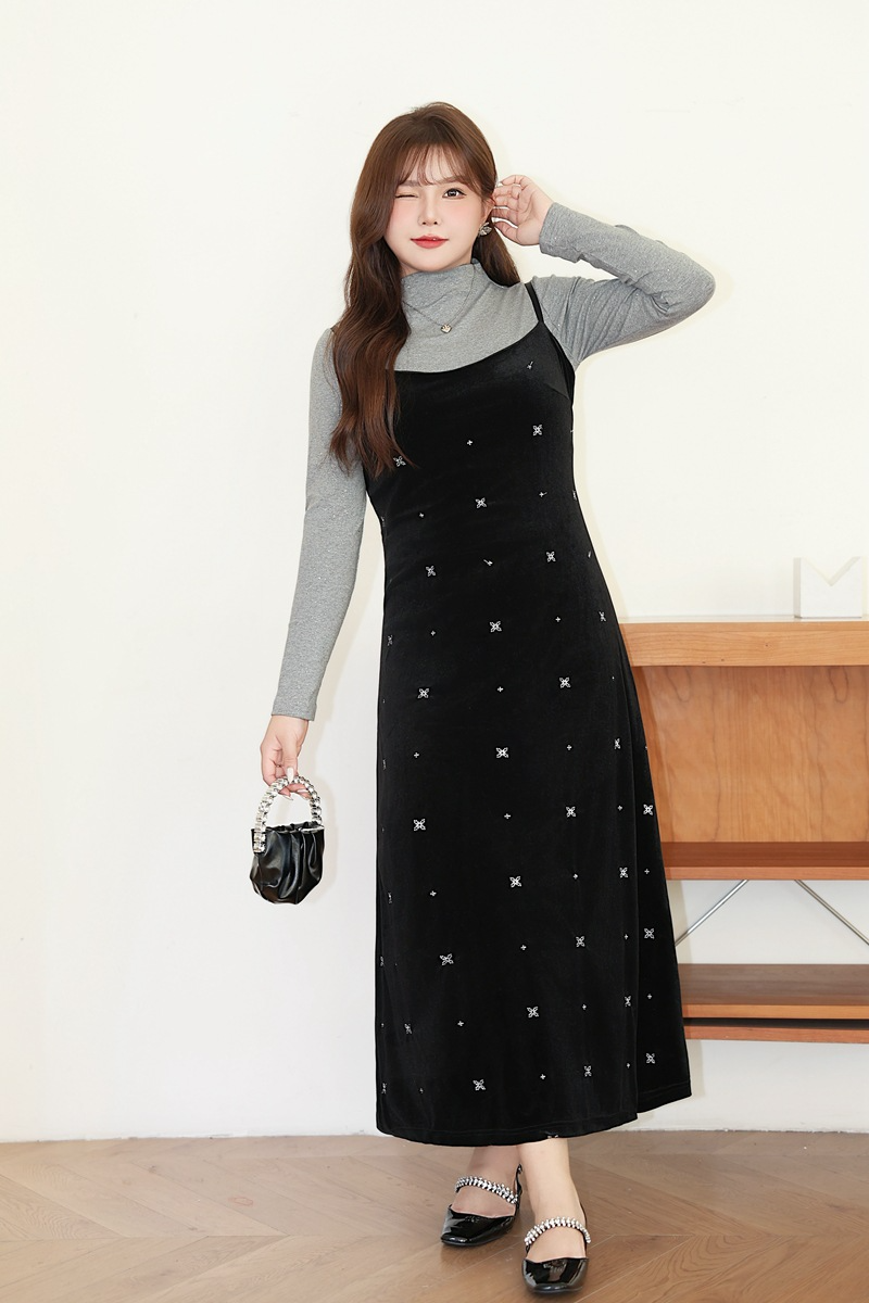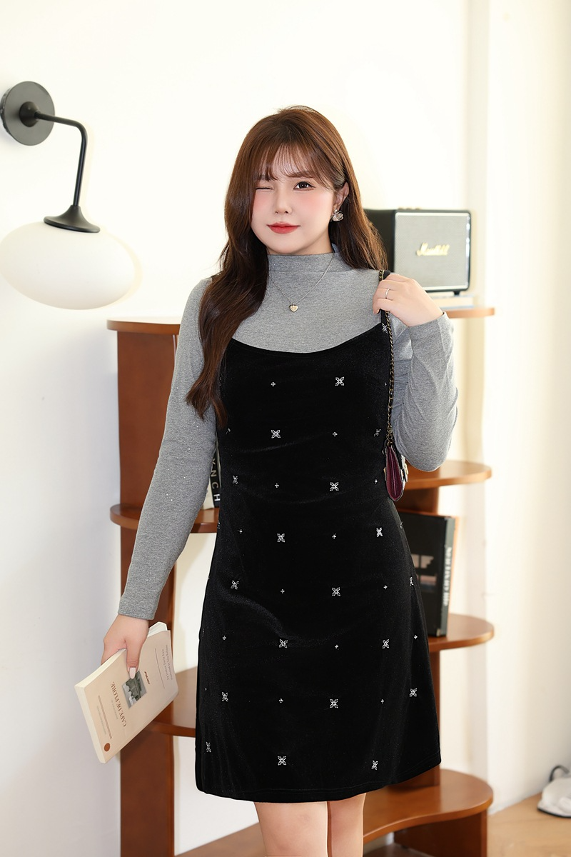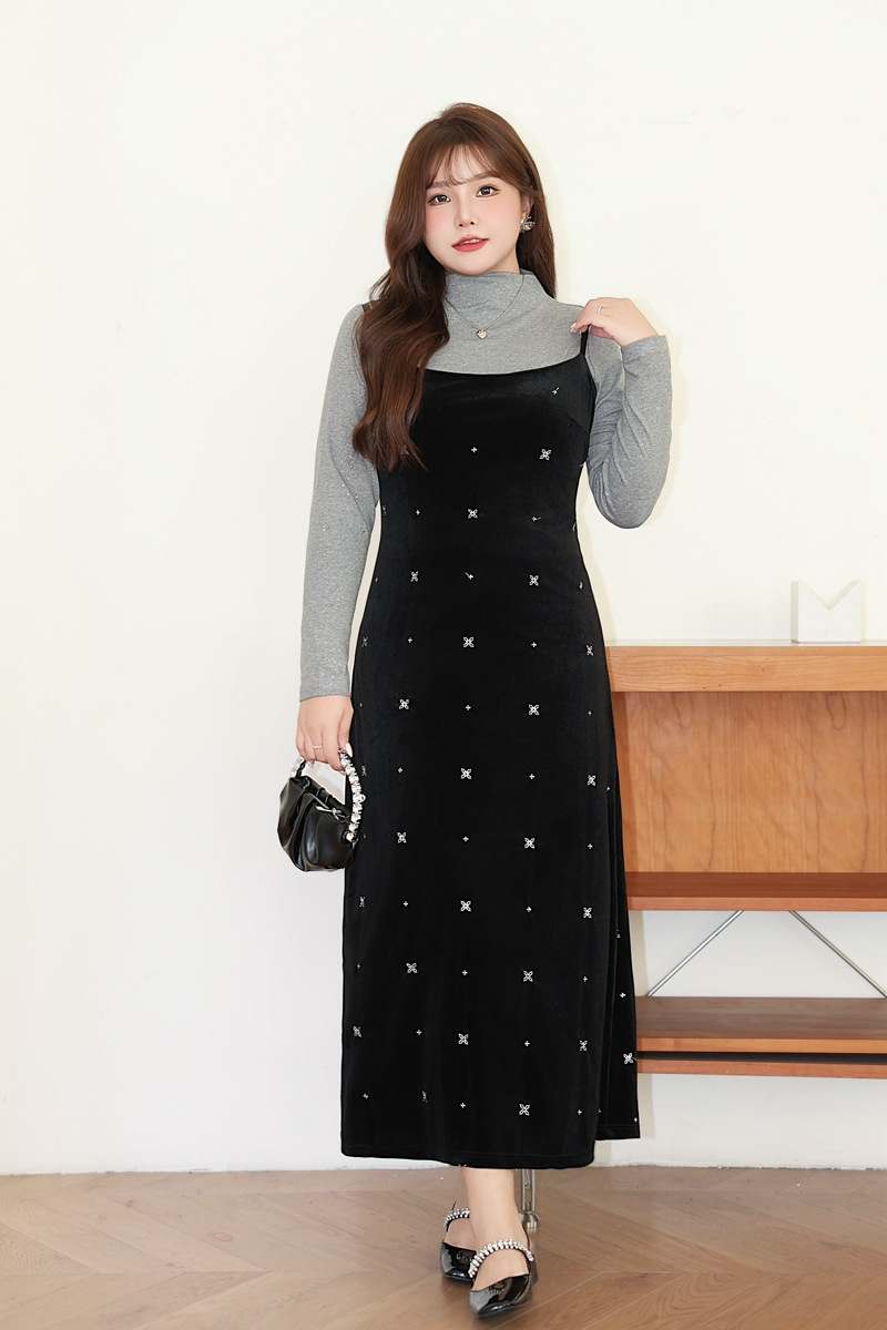 大きいサイズ レディース インナートップス+ベルベットキャミソールワンピース(ショート/ロング) LL 3L 4L 5L