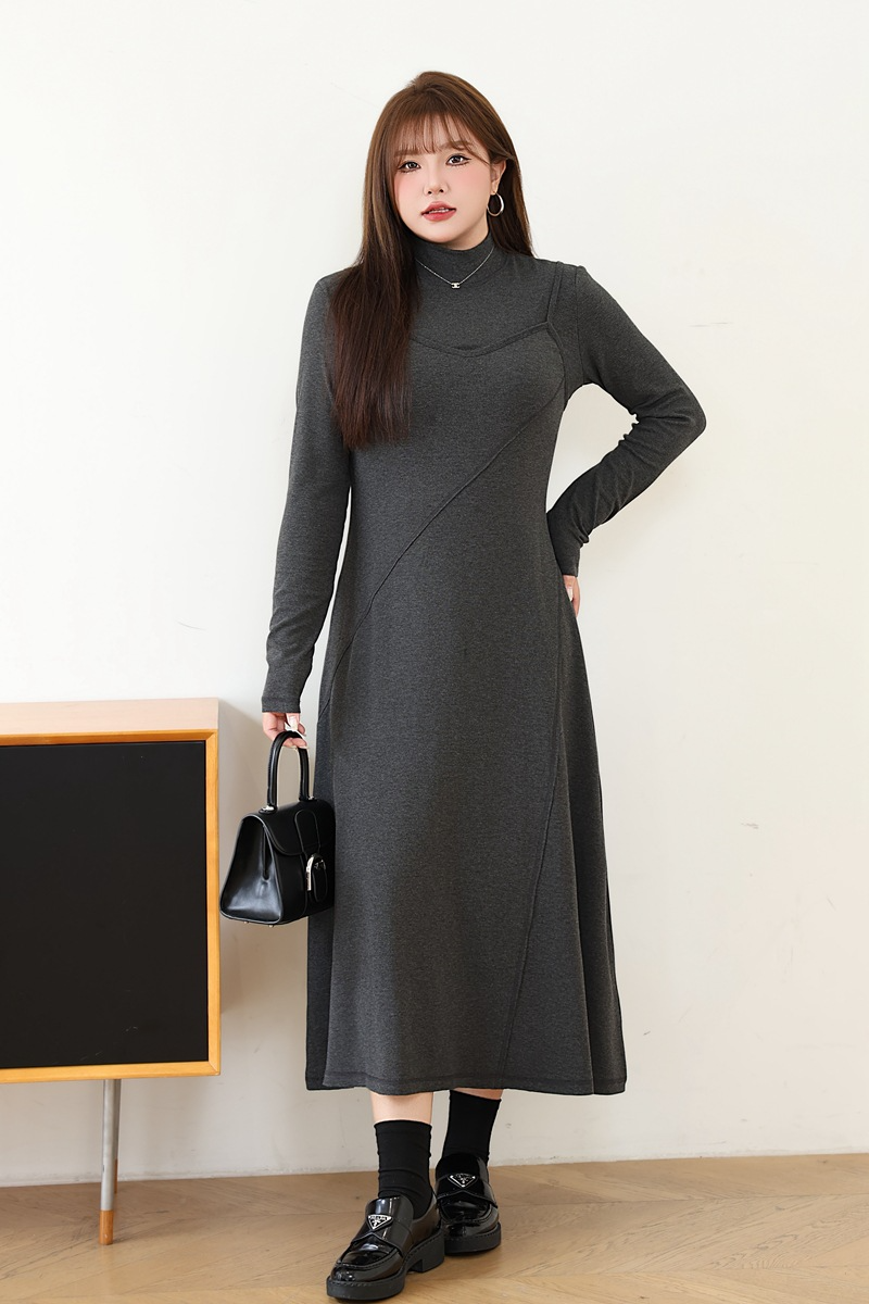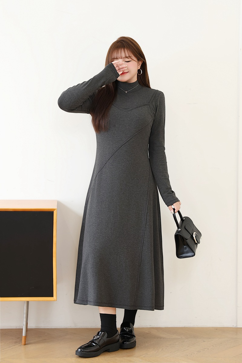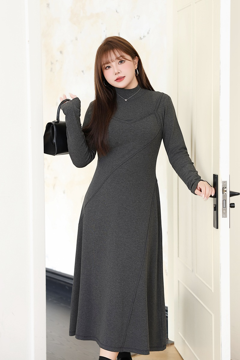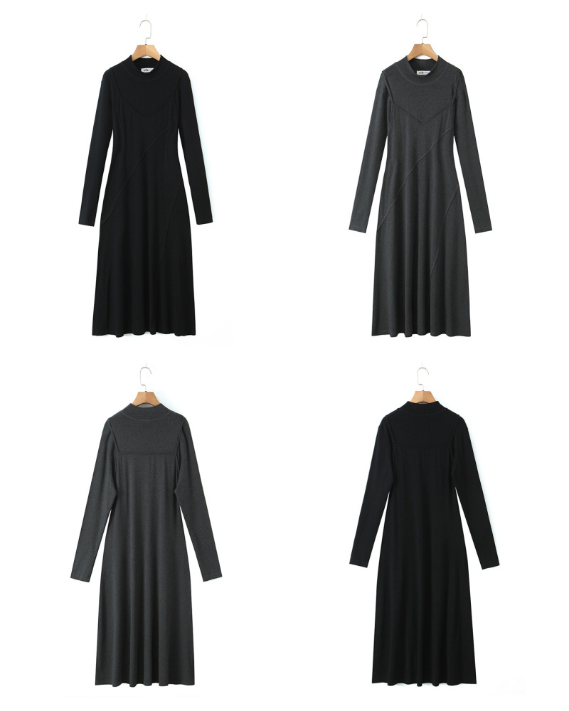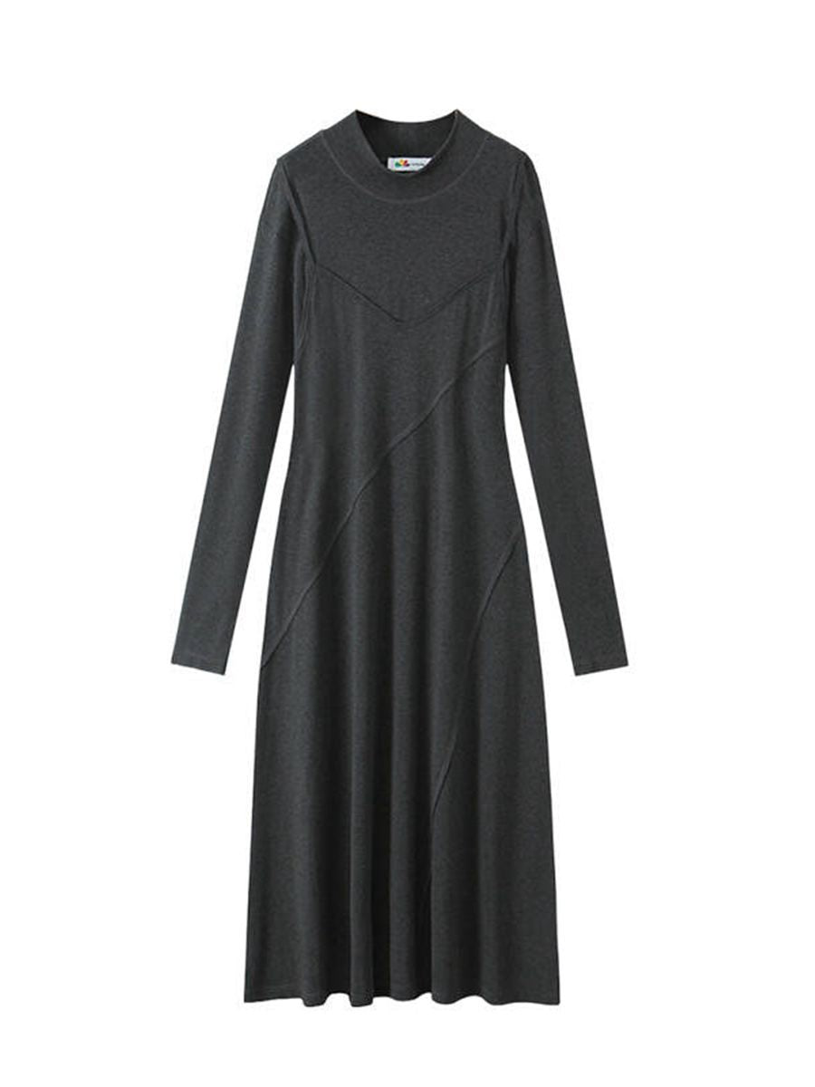 シックな秋冬ルックにぴったりの、リラックスしたフェイクツーピースのワンピースです。こちらのワンピースは、さりげなくスタイリッシュで、スタイルを美しく見せ、スリムなシルエットと美しいシルエットを完璧に融合させ、柔らかくフェミニンな魅力を放ちます。ミニマルな美学を体現し、美しくスレンダーなシルエットを演出します。ウエストを絞ったフィット感のあるデザインは、気になる体のラインを効果的にカバーし、快適でゆったりとした着心地を提供します。セミハイネックラインは、秋冬のシーズンに暖かさを提供しながら、首周りの不快感を防ぎます。