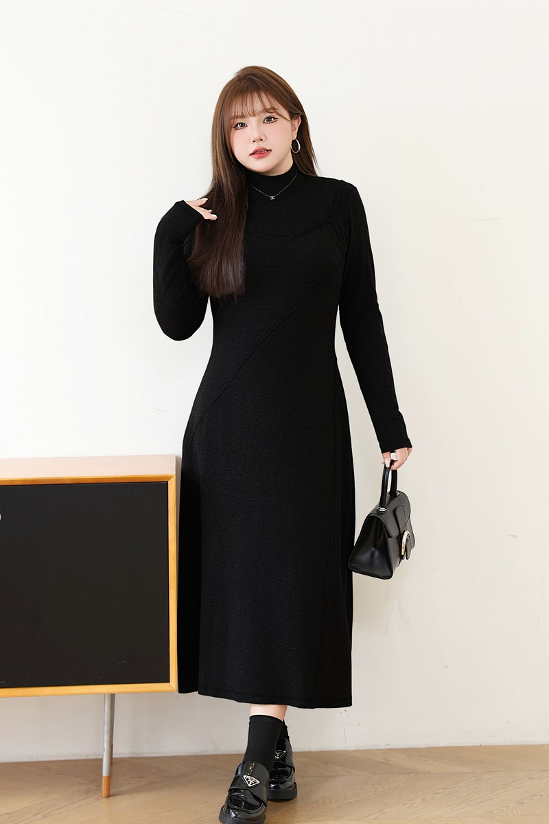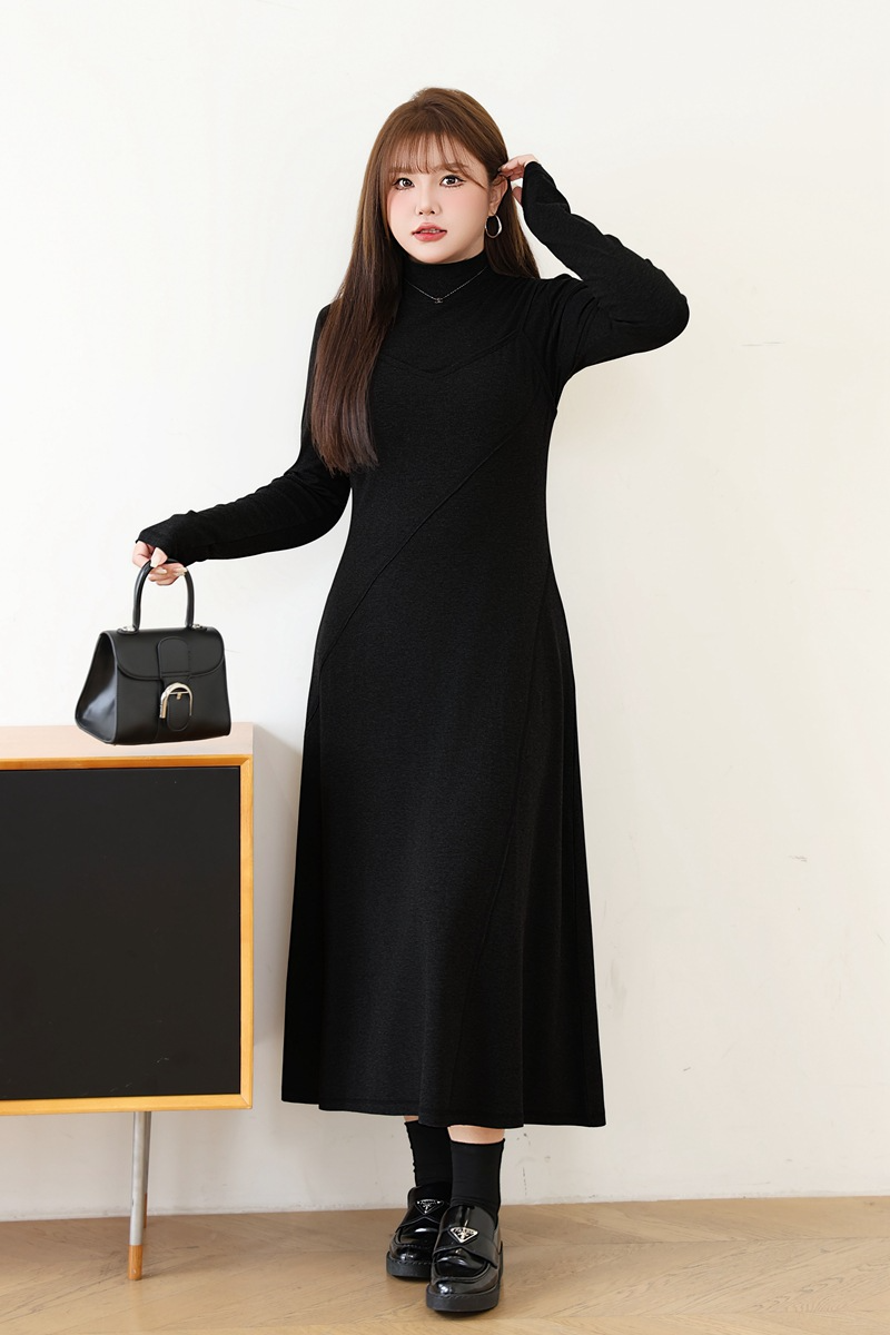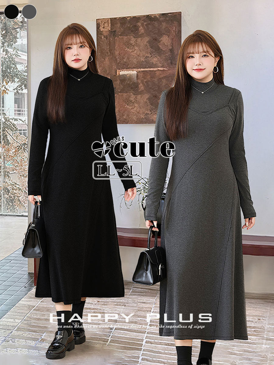 大きいサイズ レディース セミハイネックニットフェイクツーピースワンピース LL 3L 4L 5L