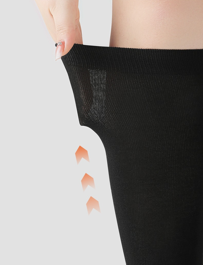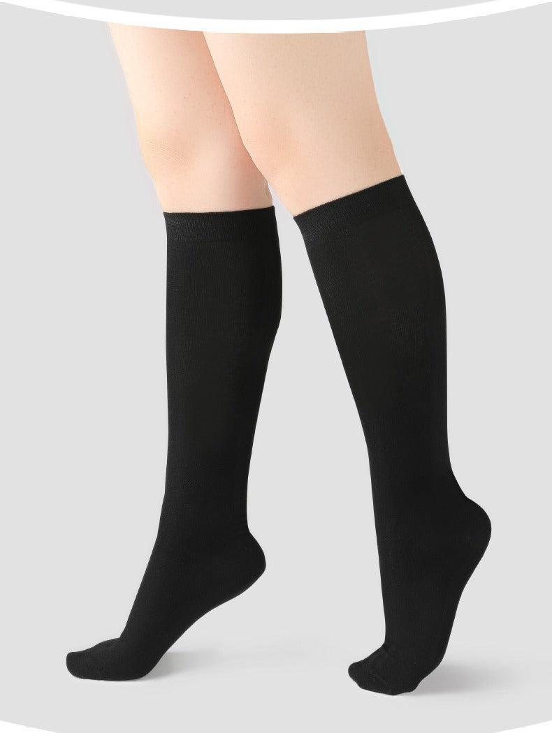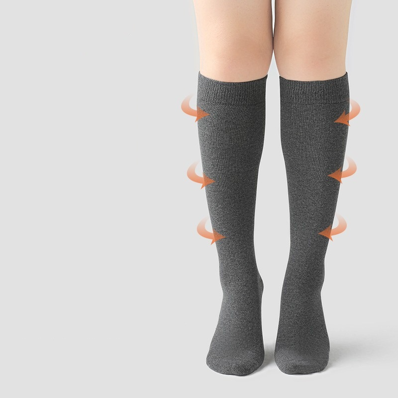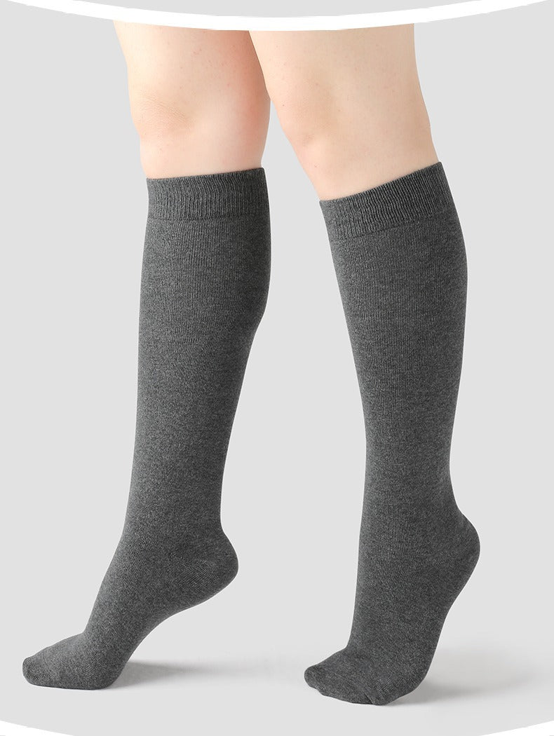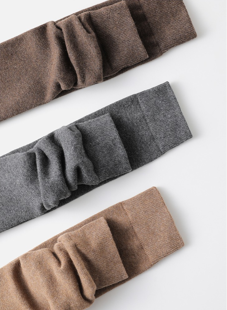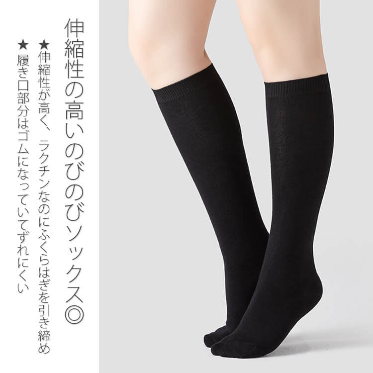 ぽっちゃりさんにもおすすめの筒周りの大きめのゆったりとしたハイソックスの登場です☆伸縮性のとても高い生地を採用していて、ゆったりとはいていただけます。履き口は柔らかなゴムになっていてずれにくいデザインです。締め付け感が少ないのに、ふくらはぎをキュッと引き締めてくれる効果も期待できる靴下です。綿素材で、吸湿性、通気性の高い素材で蒸れにくいのも嬉しいですね。