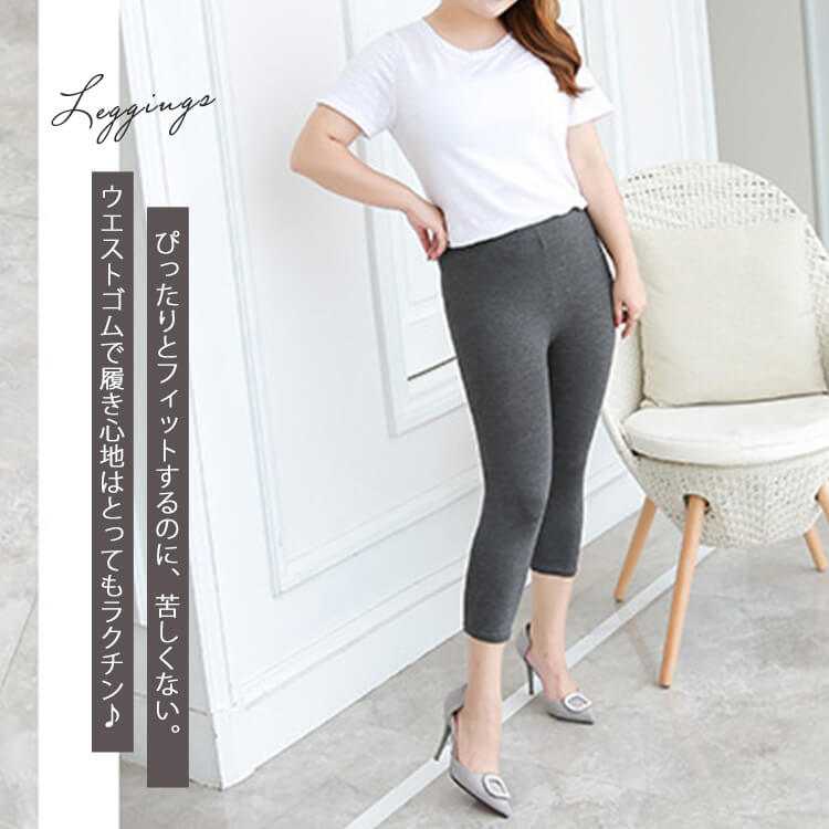 通年使える七分丈レギンスの登場です☆驚異の伸縮性で、ぐんぐん伸びるのにピッタリフィットして締め付け感のないラクチンの履き心地!膝下丈で、いつものワンピースやチュニックに合わせてコーディネート。おへそまでしっかりカバーできる股上深めで、お腹を冷えから守ります。無地でシンプルなデザインで着回しやすいアイテムです。