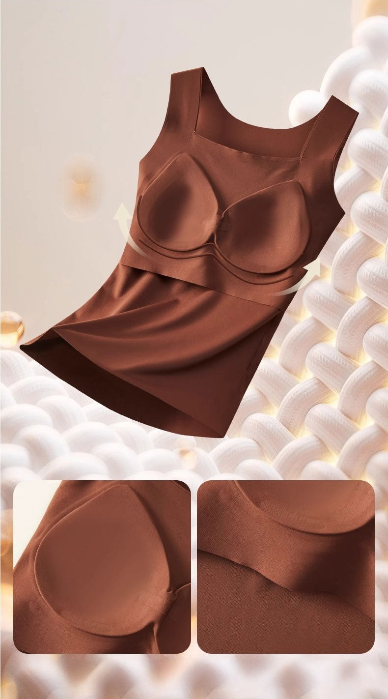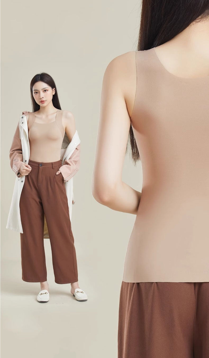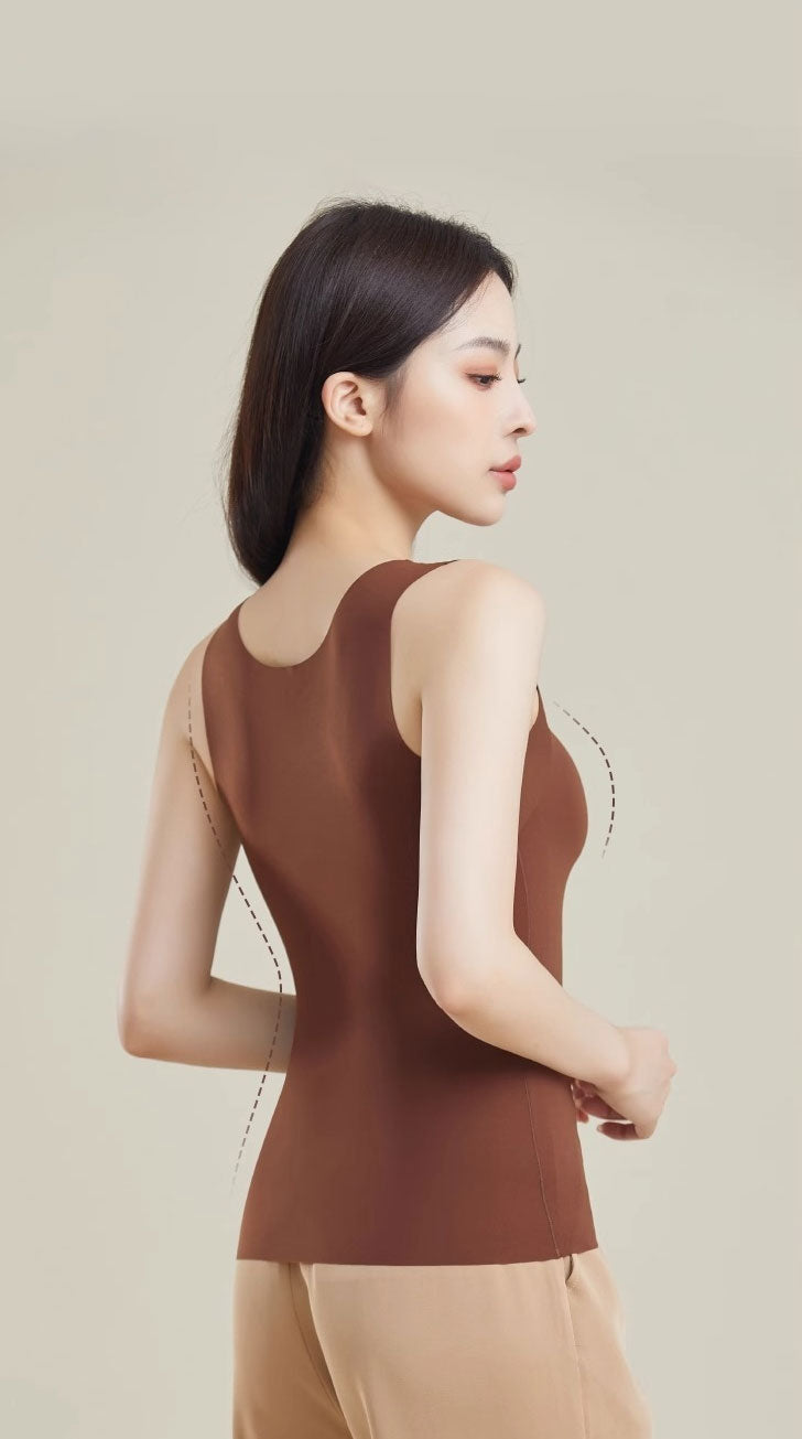 ブラジャーとインナーが一枚で完結する、カップ付きワイドショルダーシームレスタンクトップ。重ね着不要でスッキリ&お洗濯も楽に!肌にピタッと密着するシームレス設計だから、トップスに響かない!タイトな服や薄手のTシャツでも下着のラインを気にすることなくお洒落を楽しめます。内側カップ付きで自然なバストラインを形成し、動きにフィットし胸をしっかりホールド。ノンワイヤー&アンダーゴムなしでくい込まず、苦しくならない!抜群のストレッチ性でボディラインに美フィットする素肌感覚の着心地!後ろ姿にも段差が出ずスッキリキレイ◎伸縮性に優れたなめらかな生地にはヒアルロン酸が含まれており、肌に潤いを与えます。オールシーズン活躍してくれる優秀なアイテムです。