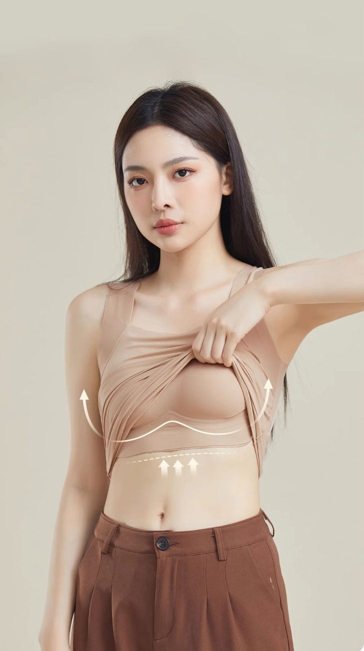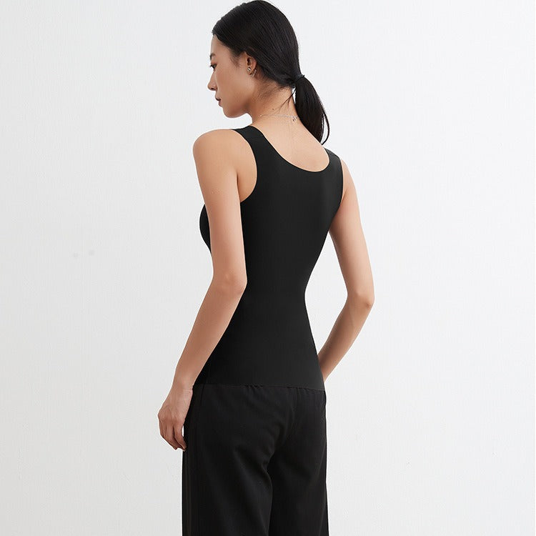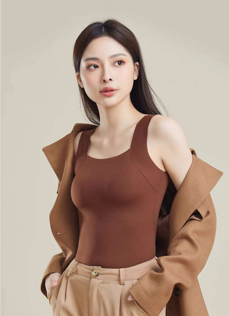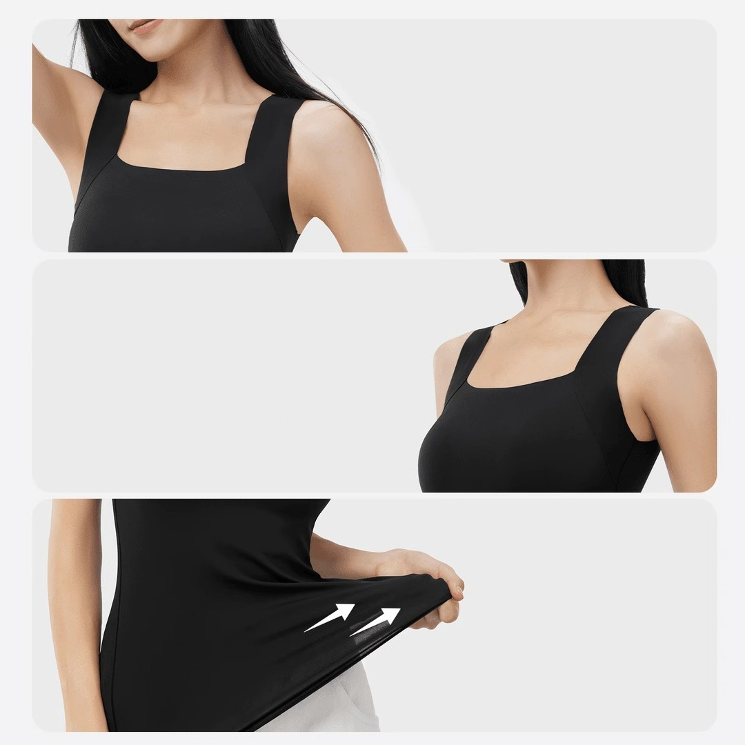 ブラジャーとインナーが一枚で完結する、カップ付きワイドショルダーシームレスタンクトップ。重ね着不要でスッキリ&お洗濯も楽に!肌にピタッと密着するシームレス設計だから、トップスに響かない!タイトな服や薄手のTシャツでも下着のラインを気にすることなくお洒落を楽しめます。内側カップ付きで自然なバストラインを形成し、動きにフィットし胸をしっかりホールド。ノンワイヤー&アンダーゴムなしでくい込まず、苦しくならない!抜群のストレッチ性でボディラインに美フィットする素肌感覚の着心地!後ろ姿にも段差が出ずスッキリキレイ◎伸縮性に優れたなめらかな生地にはヒアルロン酸が含まれており、肌に潤いを与えます。オールシーズン活躍してくれる優秀なアイテムです。