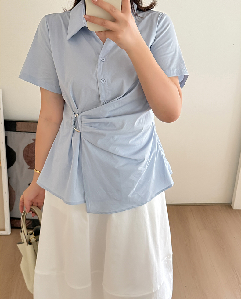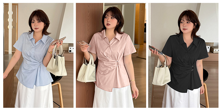 大きいサイズ レディース サイドリングバックル半袖カラーシャツ LL 3L 4L 5L 6L
